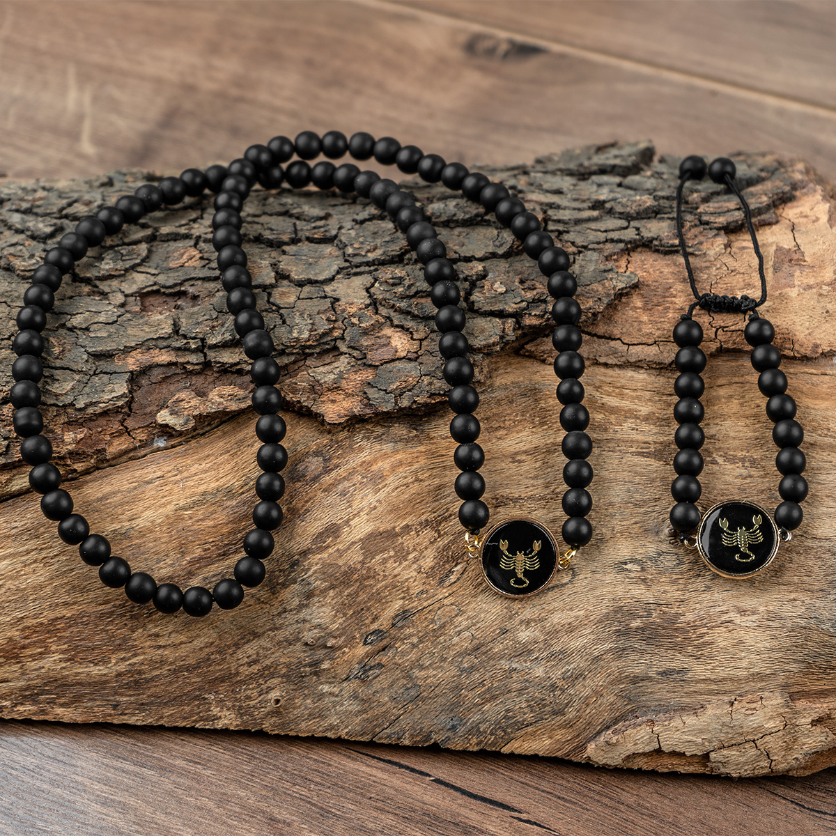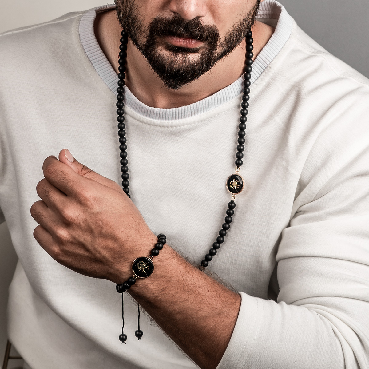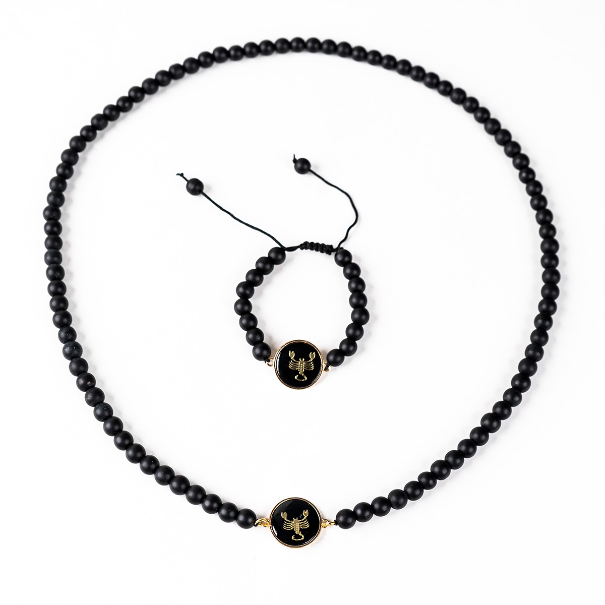نیم ست های مهره ای مشکی از انواع گردنبندهای رو لباسی است که محبوبیت خاصی بین جوانان پیدا کرده است و جذابیت زیادی به استایل شما میدهد.طرح روی پلاک این گردنبندها نماد ماه های سال بوده و میتوانید ماه مورد نظرتان را انتخاب نمایید. قطر سنگ ها 2 میلی متر و به رنگ مشکی مات بوده و به دلیل طراحی خاص، برای استفاده روزانه و قابل ست شدن با انواع پوشش ها و مناسب برای آقایان و خانم هاست.