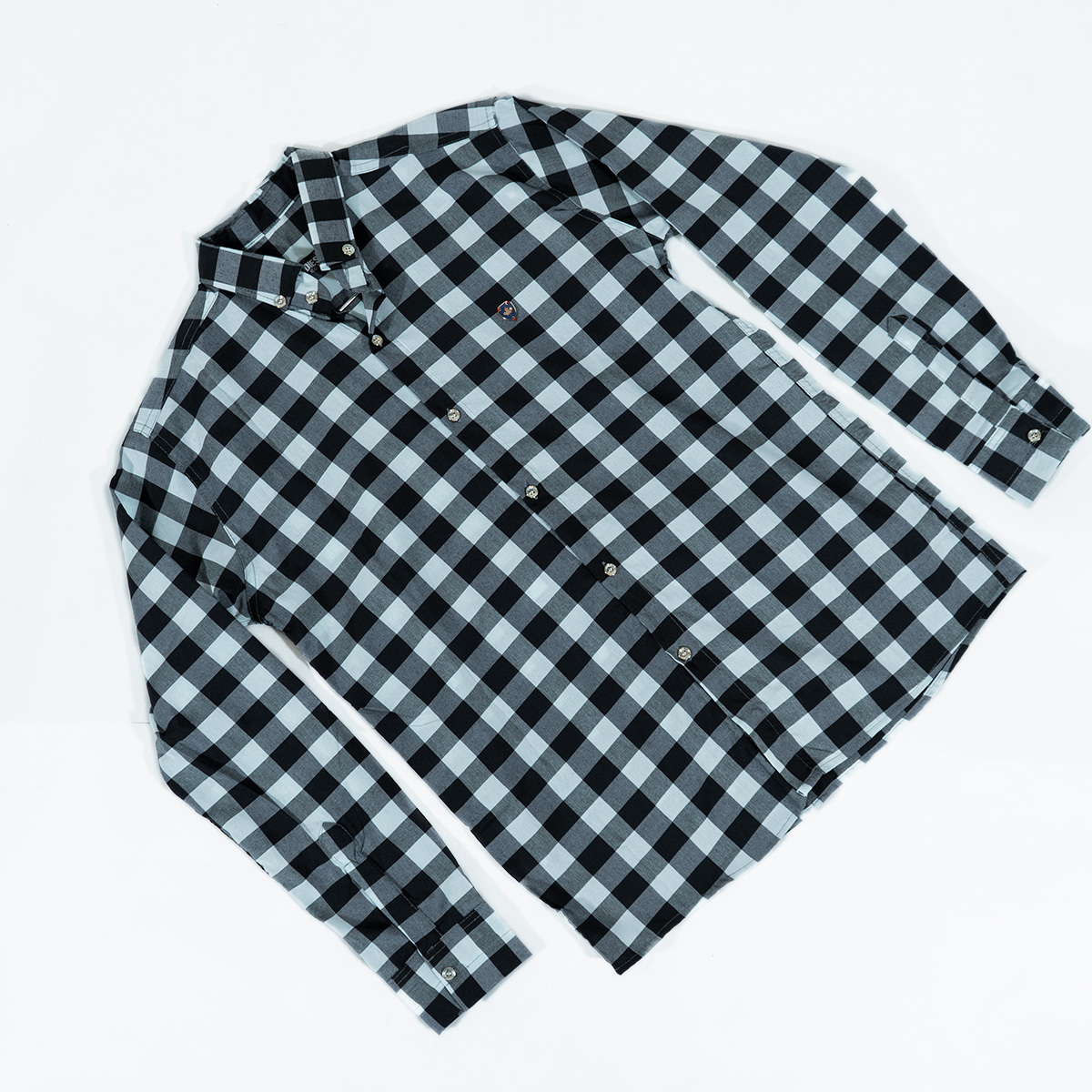 پیراهن چهارخانه مشکی سبز مدل 4560