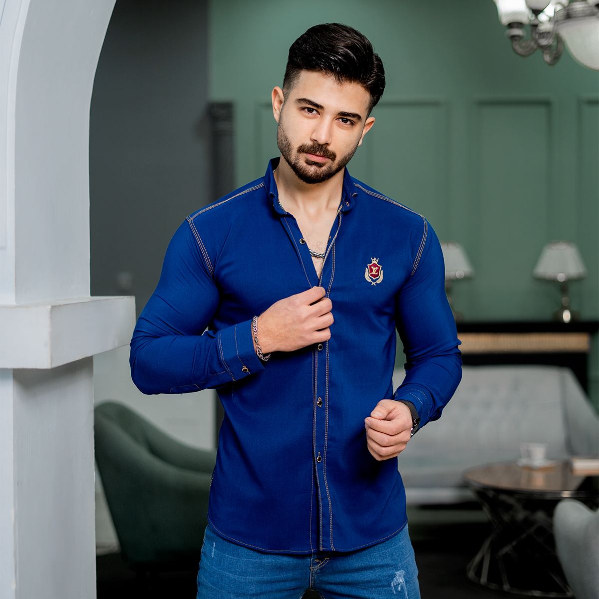 پیراهن مردانه LV آبی مدل gabi