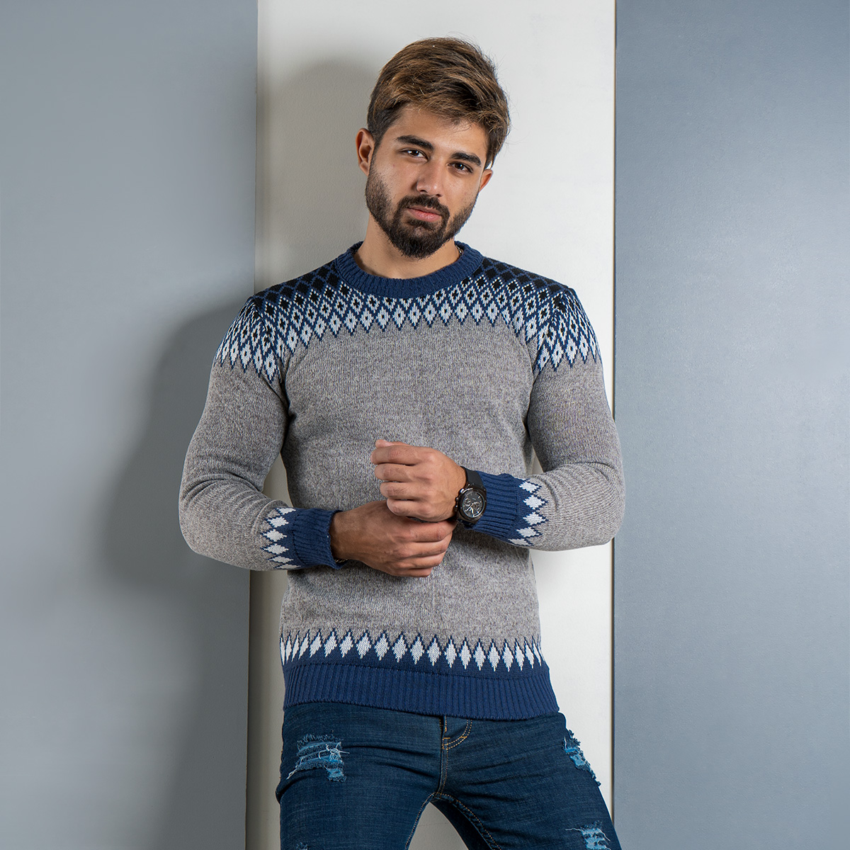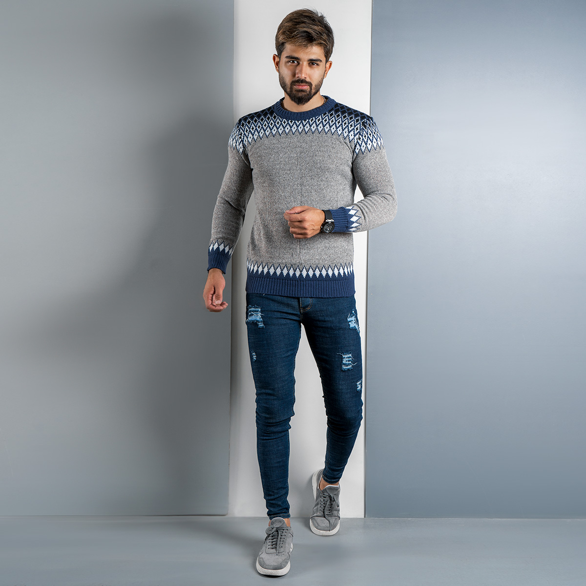 پلیور طوسی آبی(T) مردانه مدل tikal