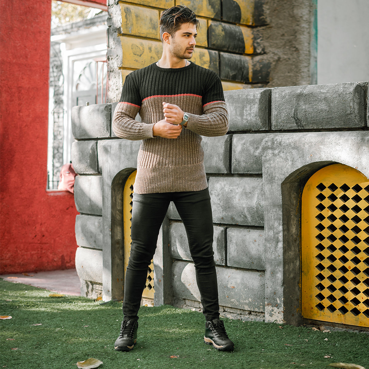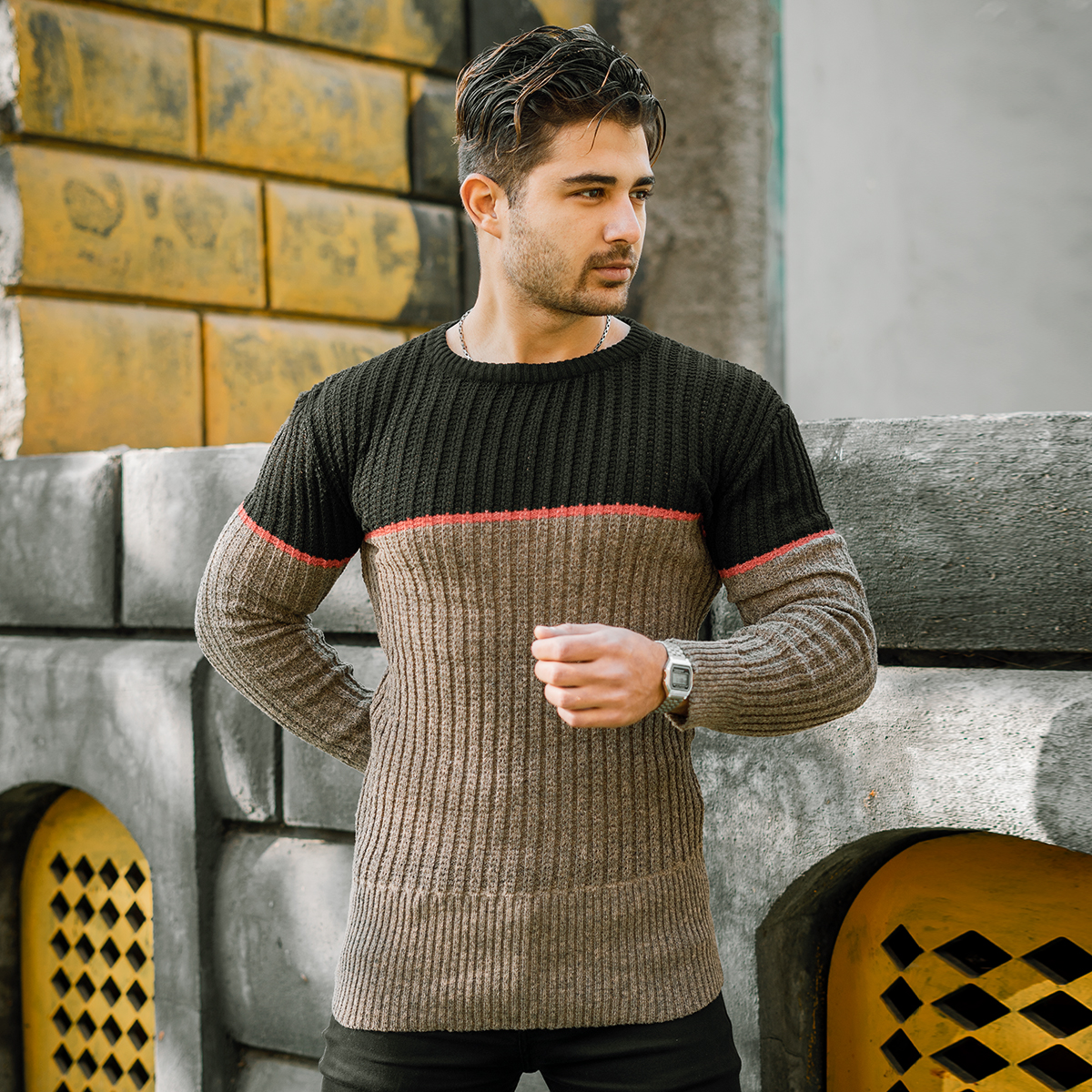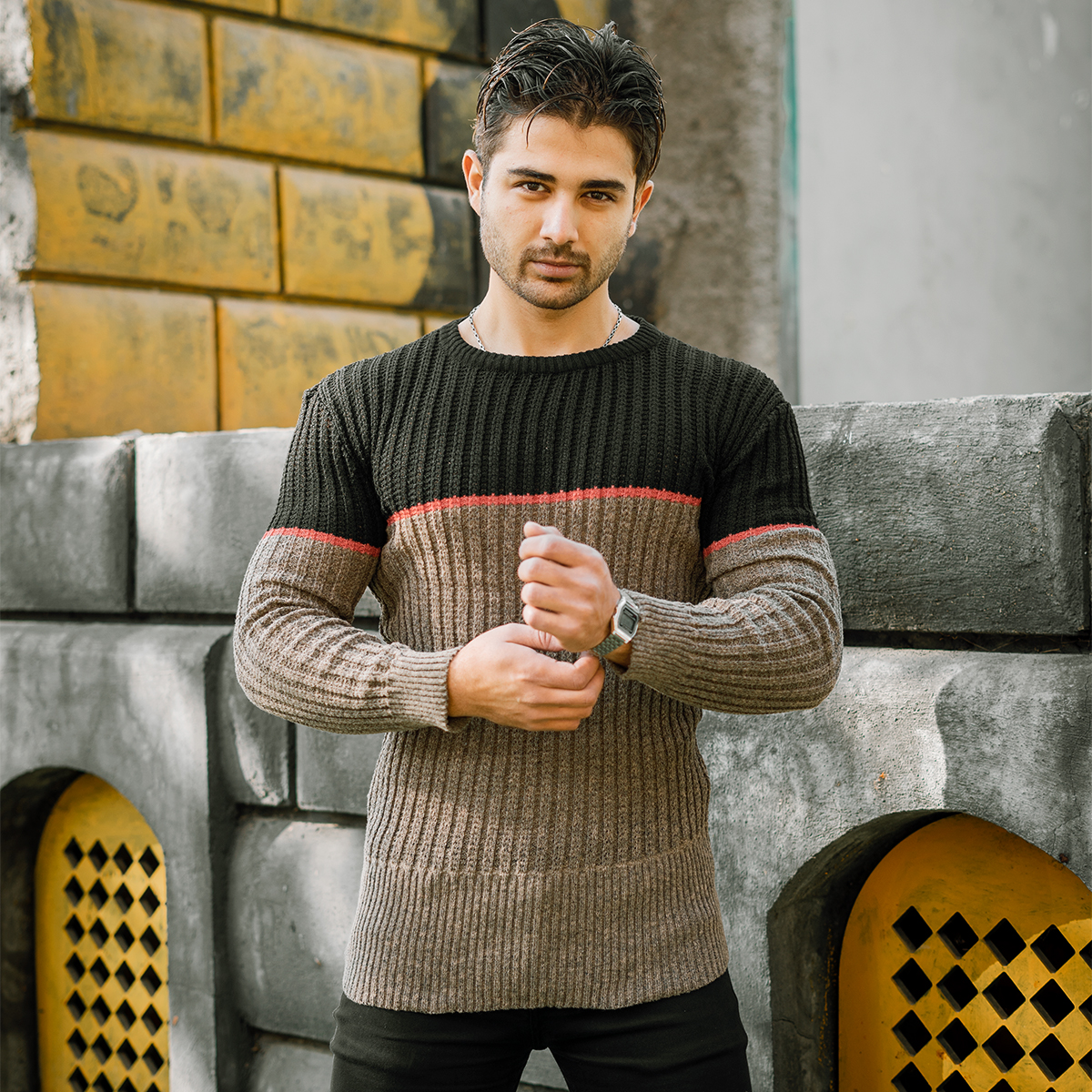 پلیور اندامی (T) کرم مشکی مردانه مدل Adnan