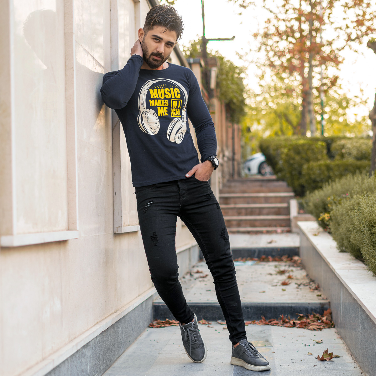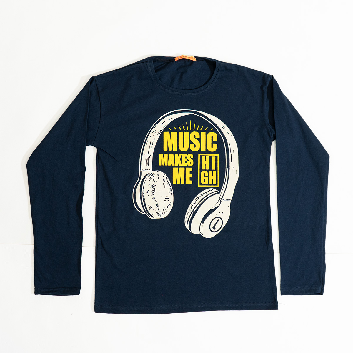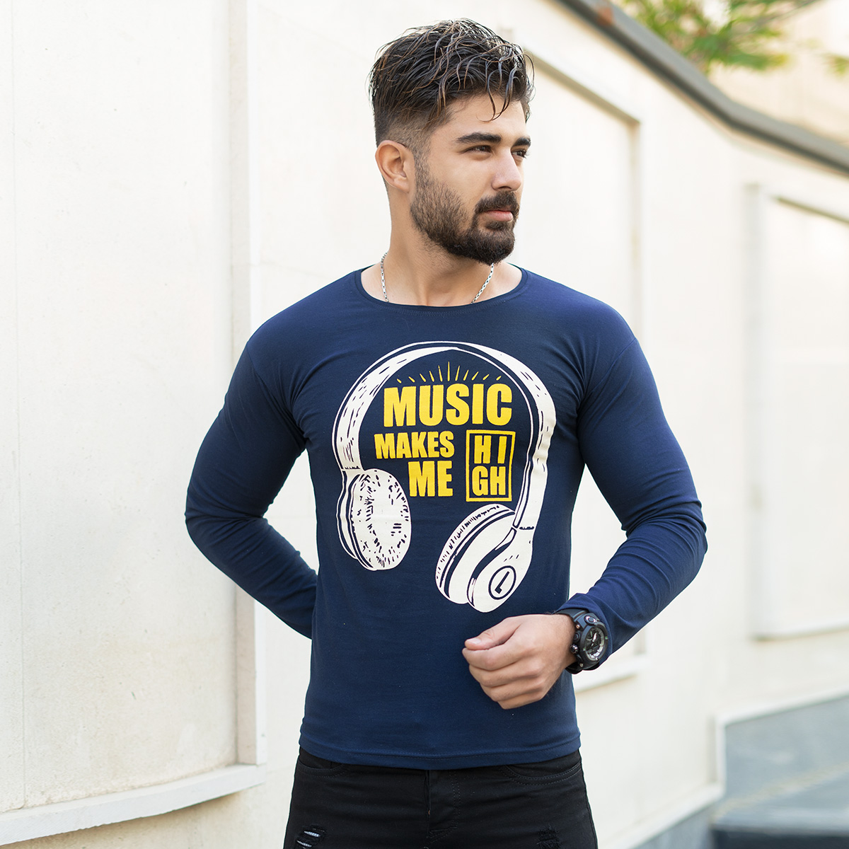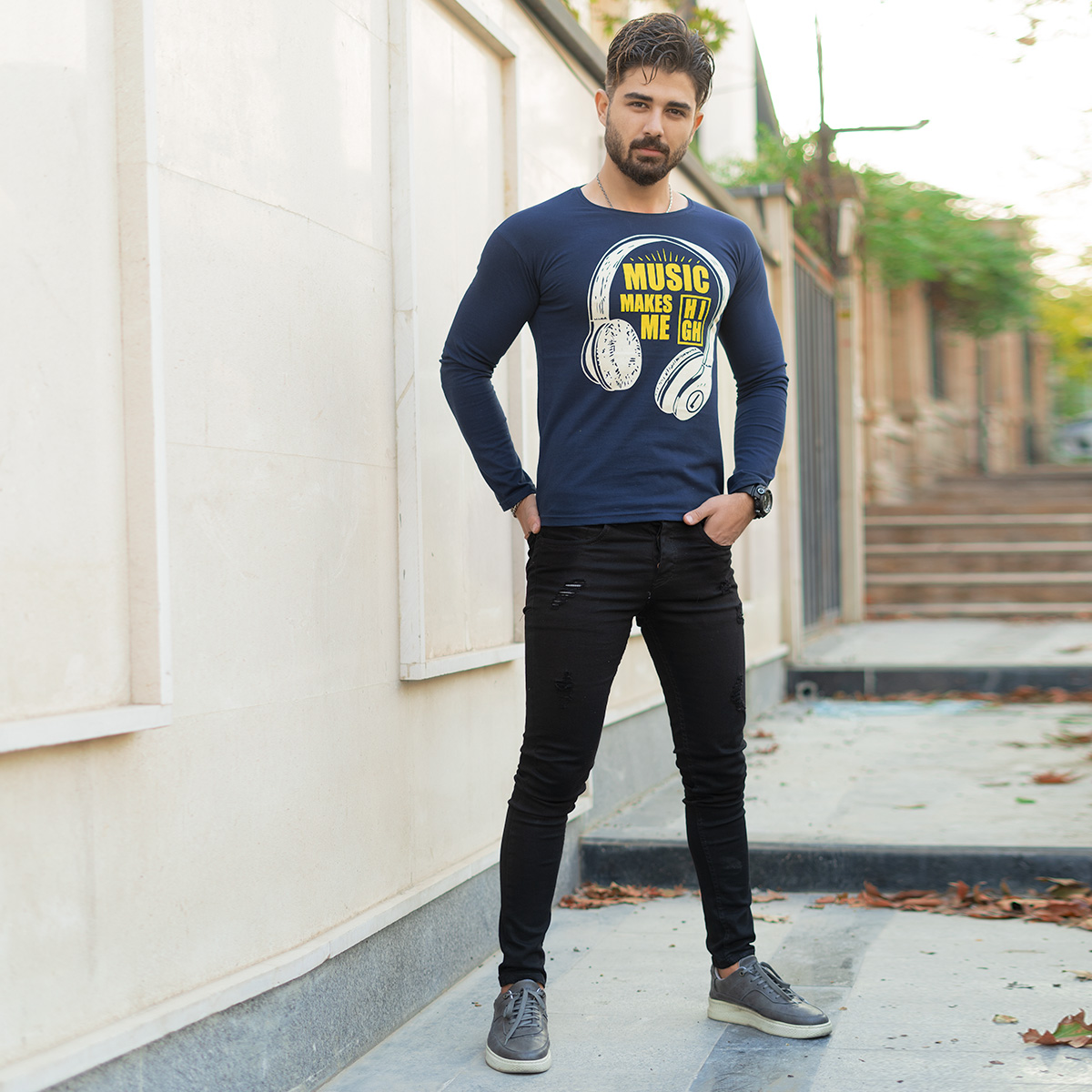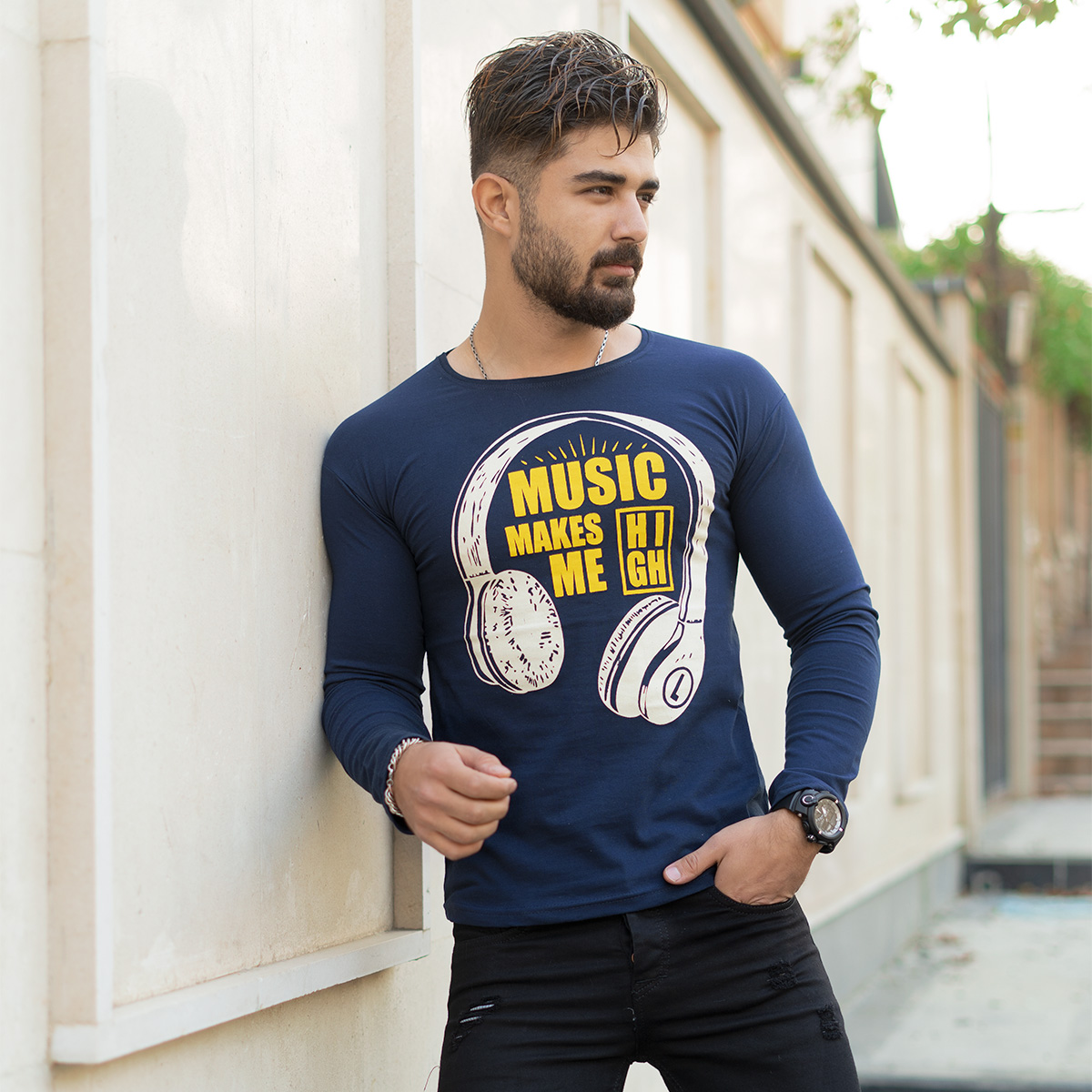 تیشرت آستین بلندمردانه طرح هدست سرمه ای مدل O22