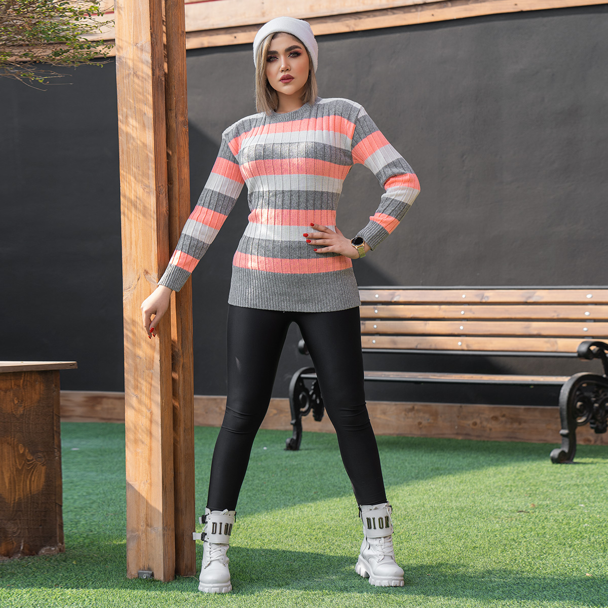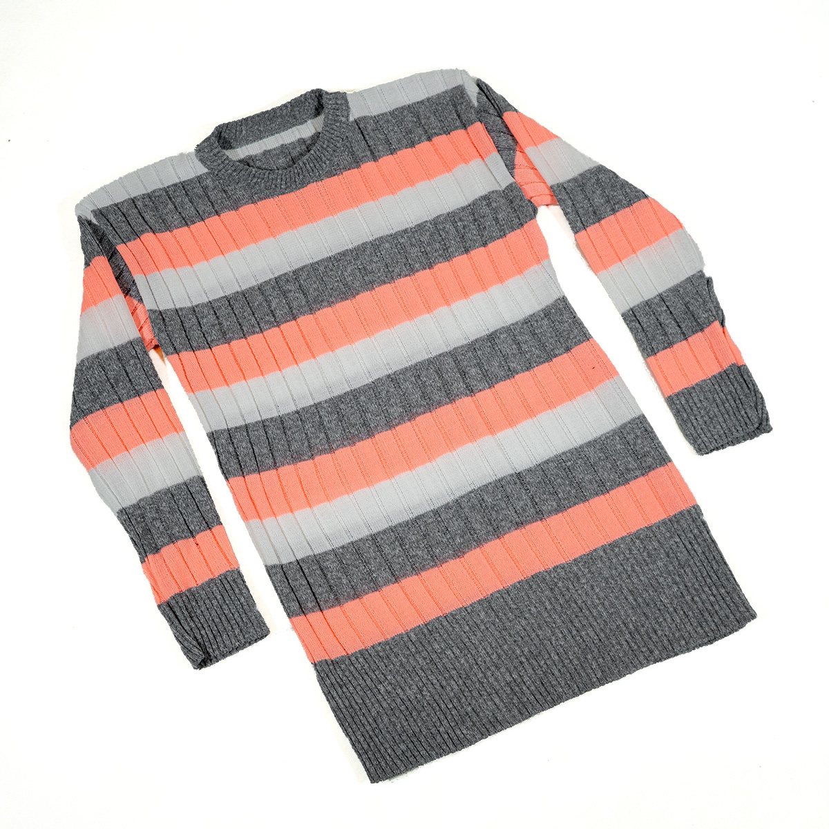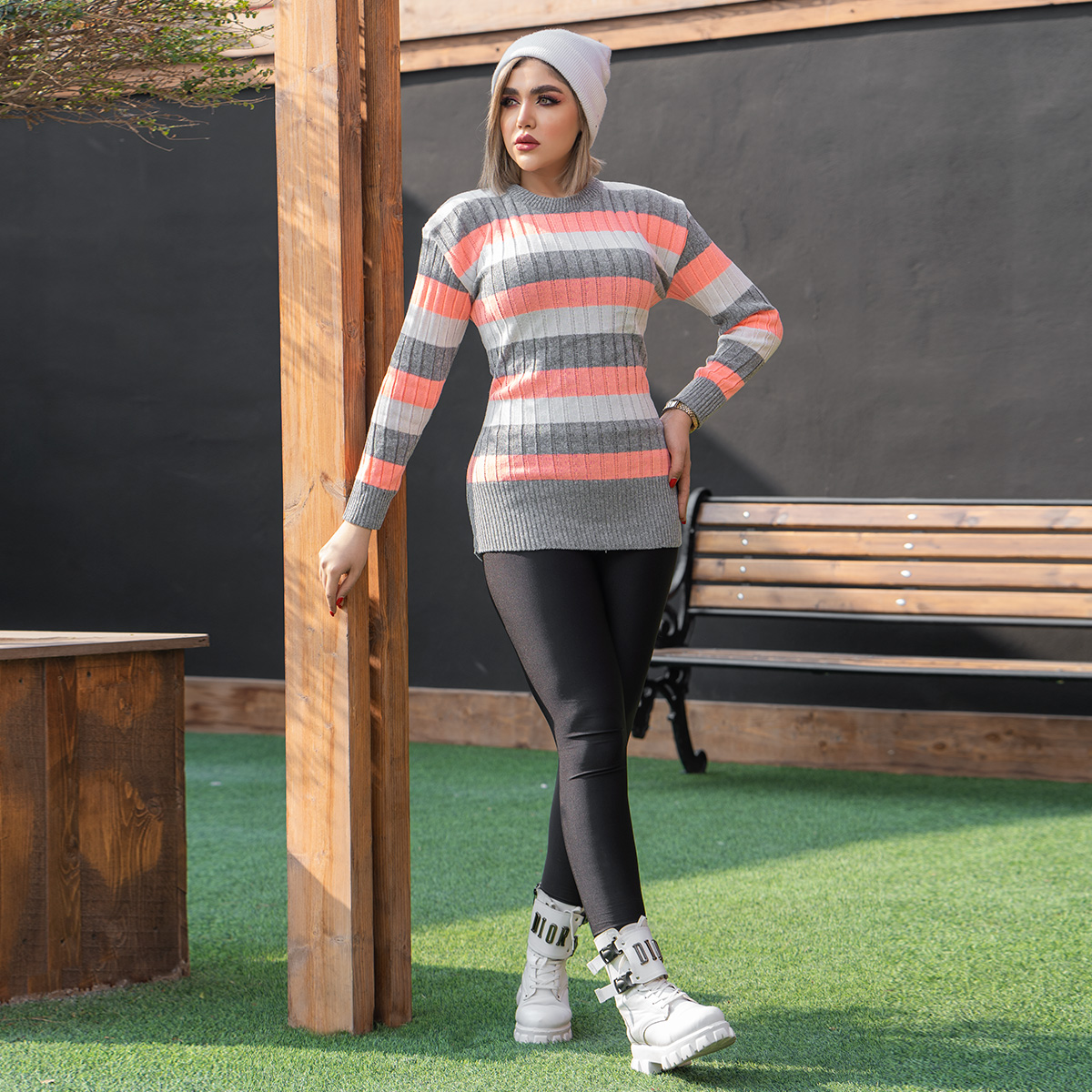 تونیک بافت زنانه راه راه طوسی صورتی مدل kareno