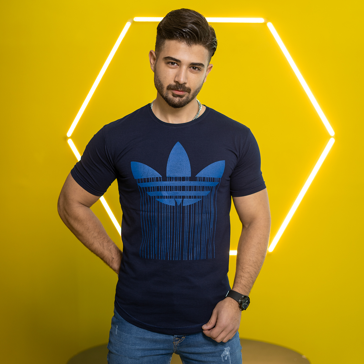 تیشرت آدیداس سرمه ای مردانه مدلAtron