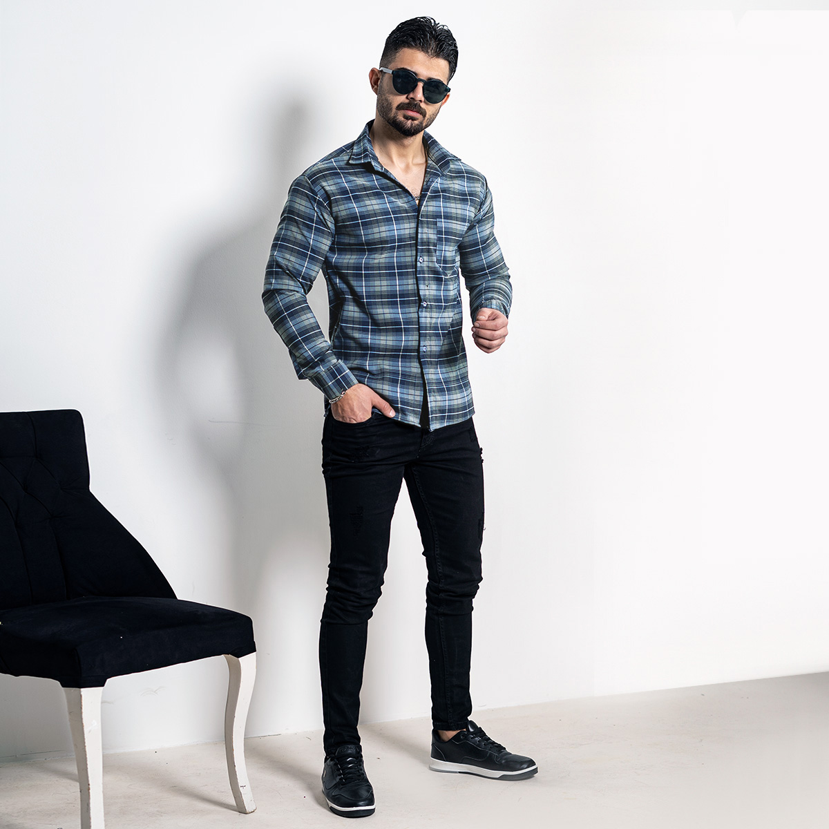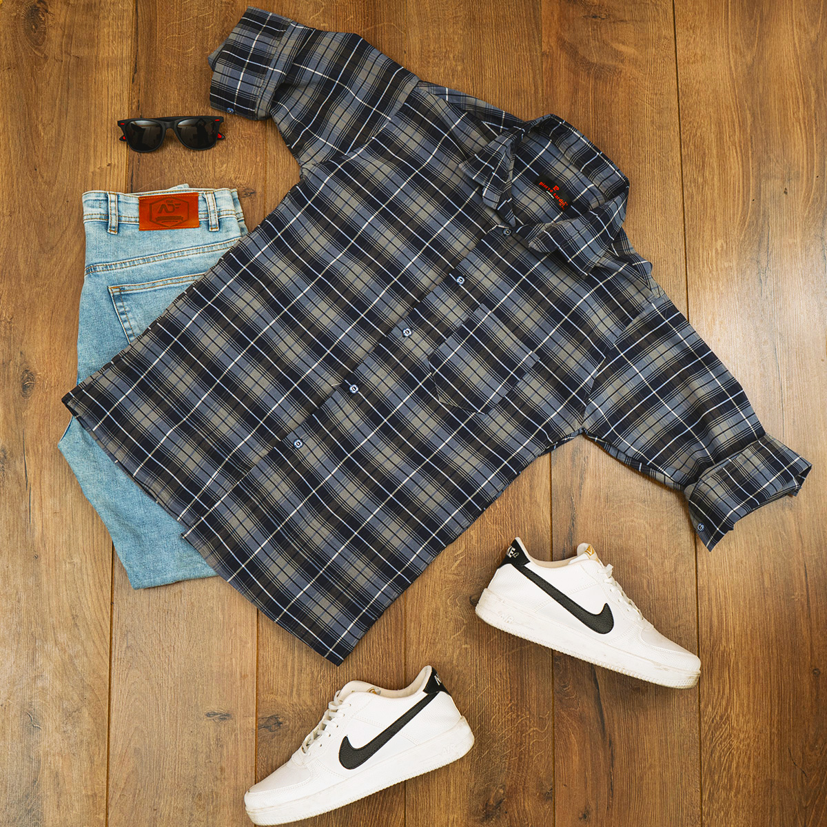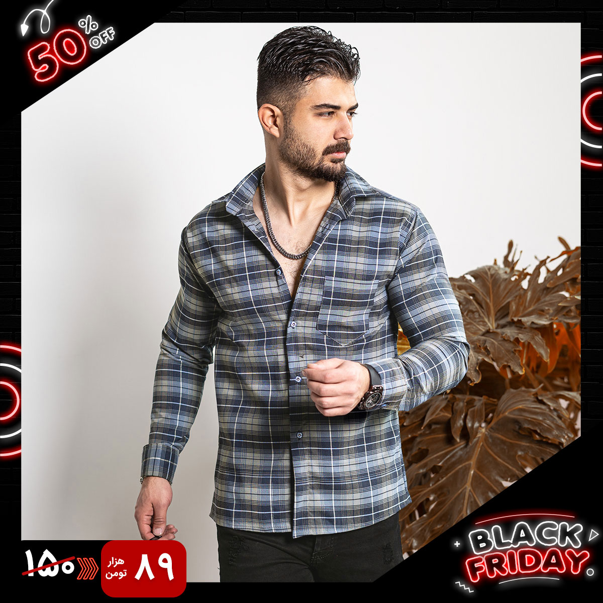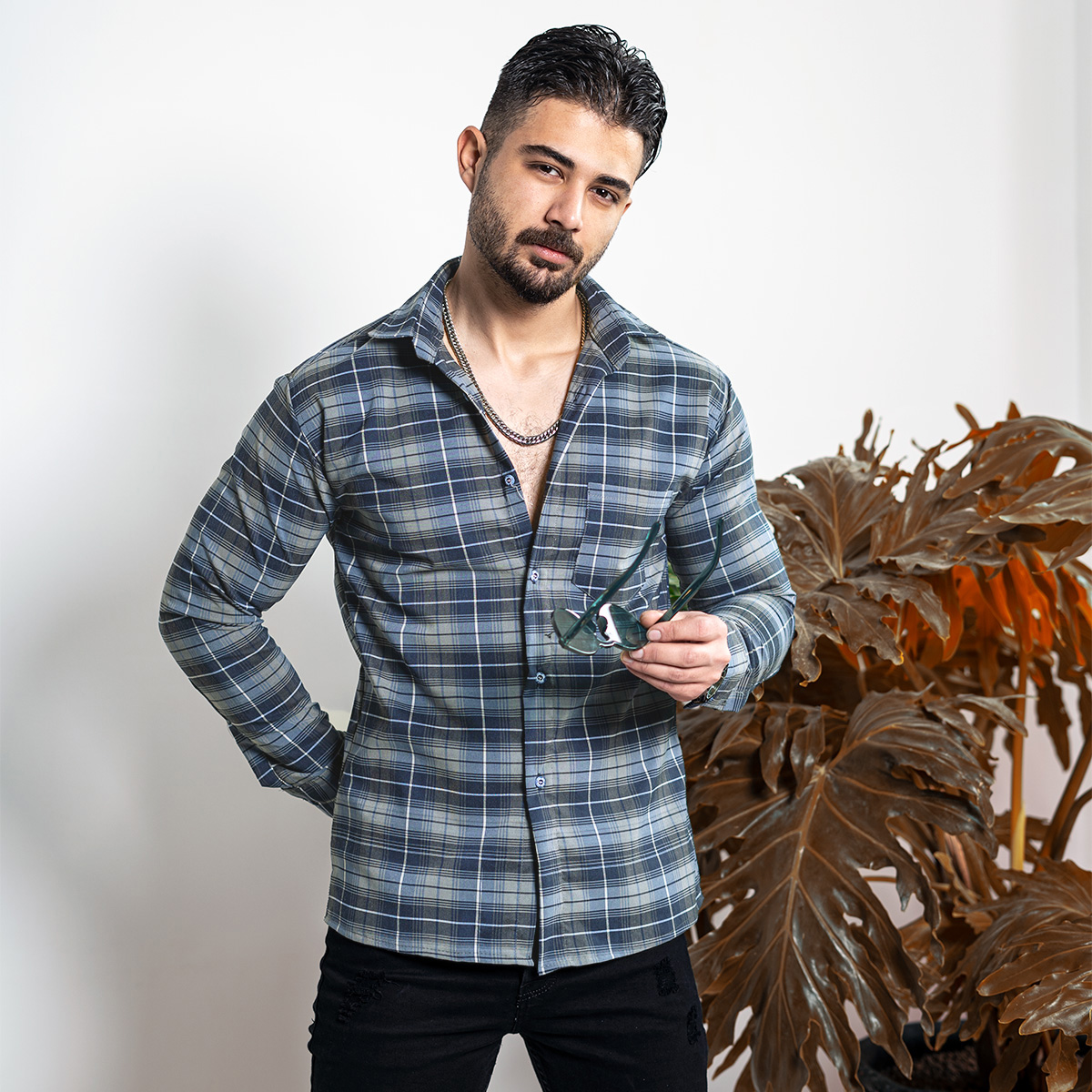 پیراهن چهارخانه آبی تیره سرمه ای مردانه مدلDivan