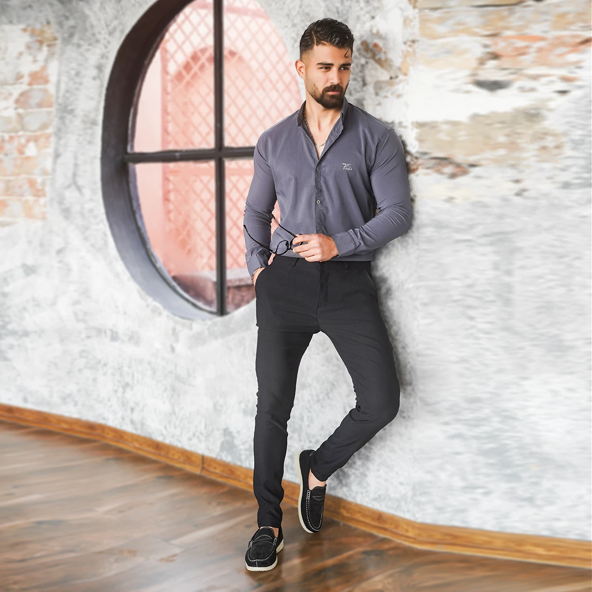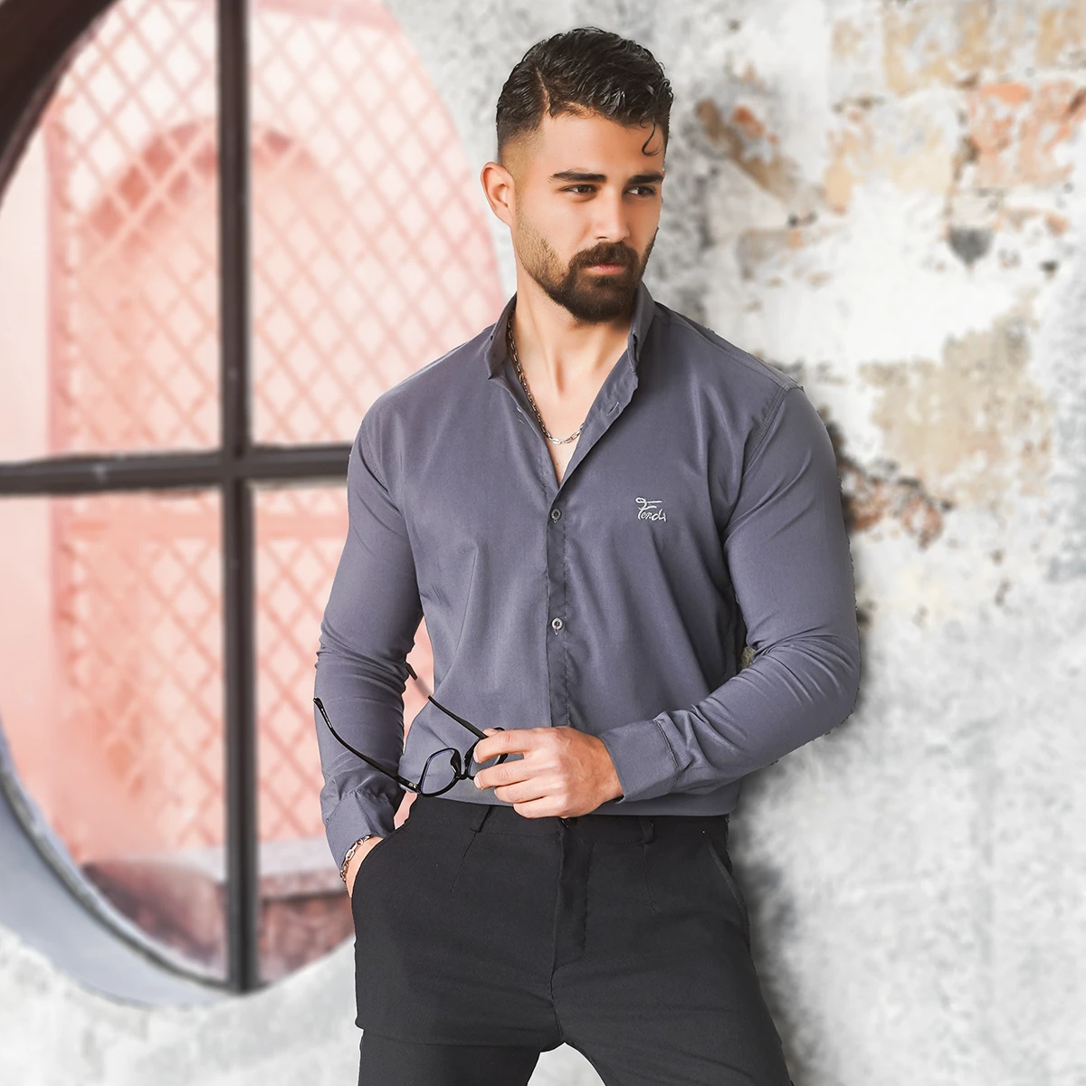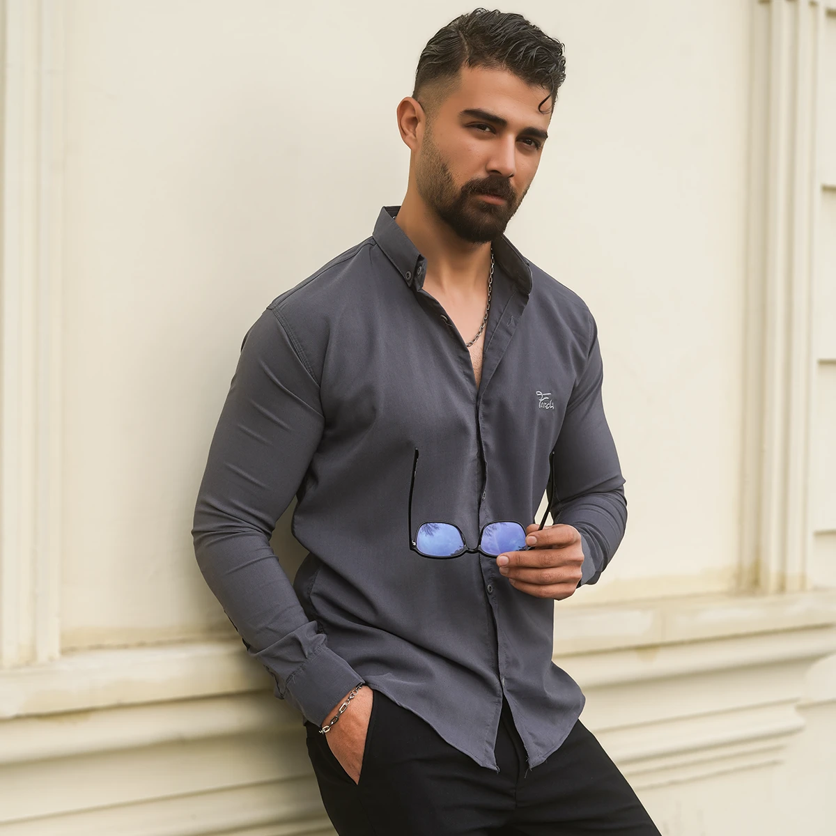 پیراهن مردانه طوسی تیره مدل VQ