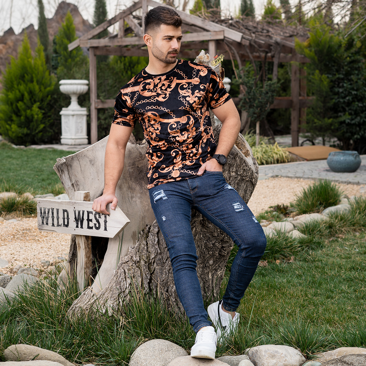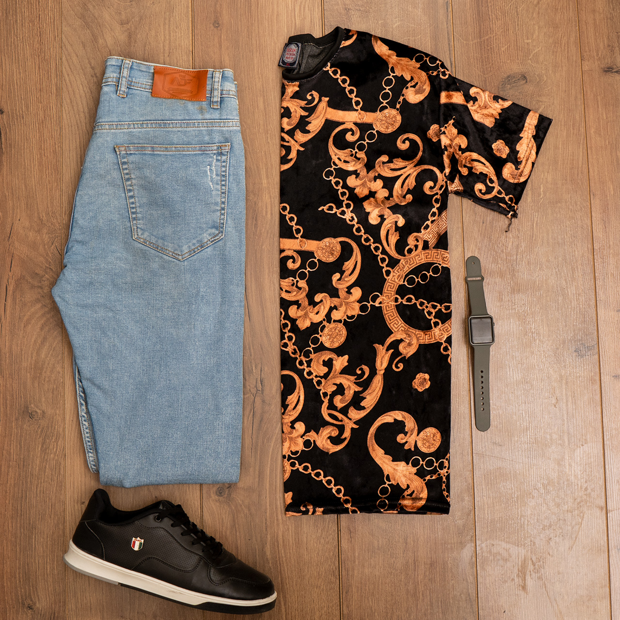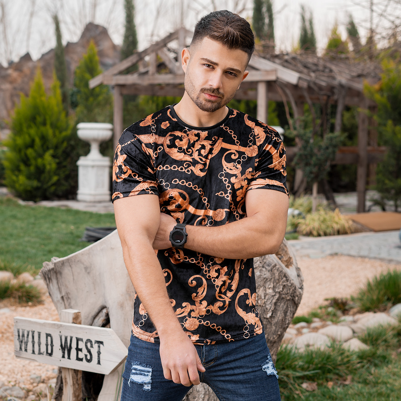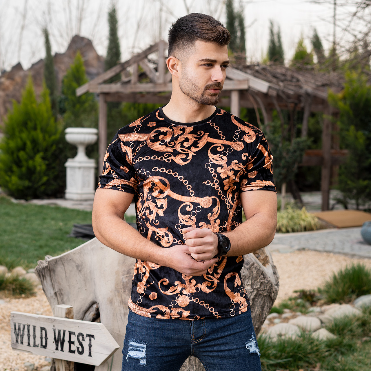 تیشرت مخمل مردانه طرح زنجیر مدلTomas