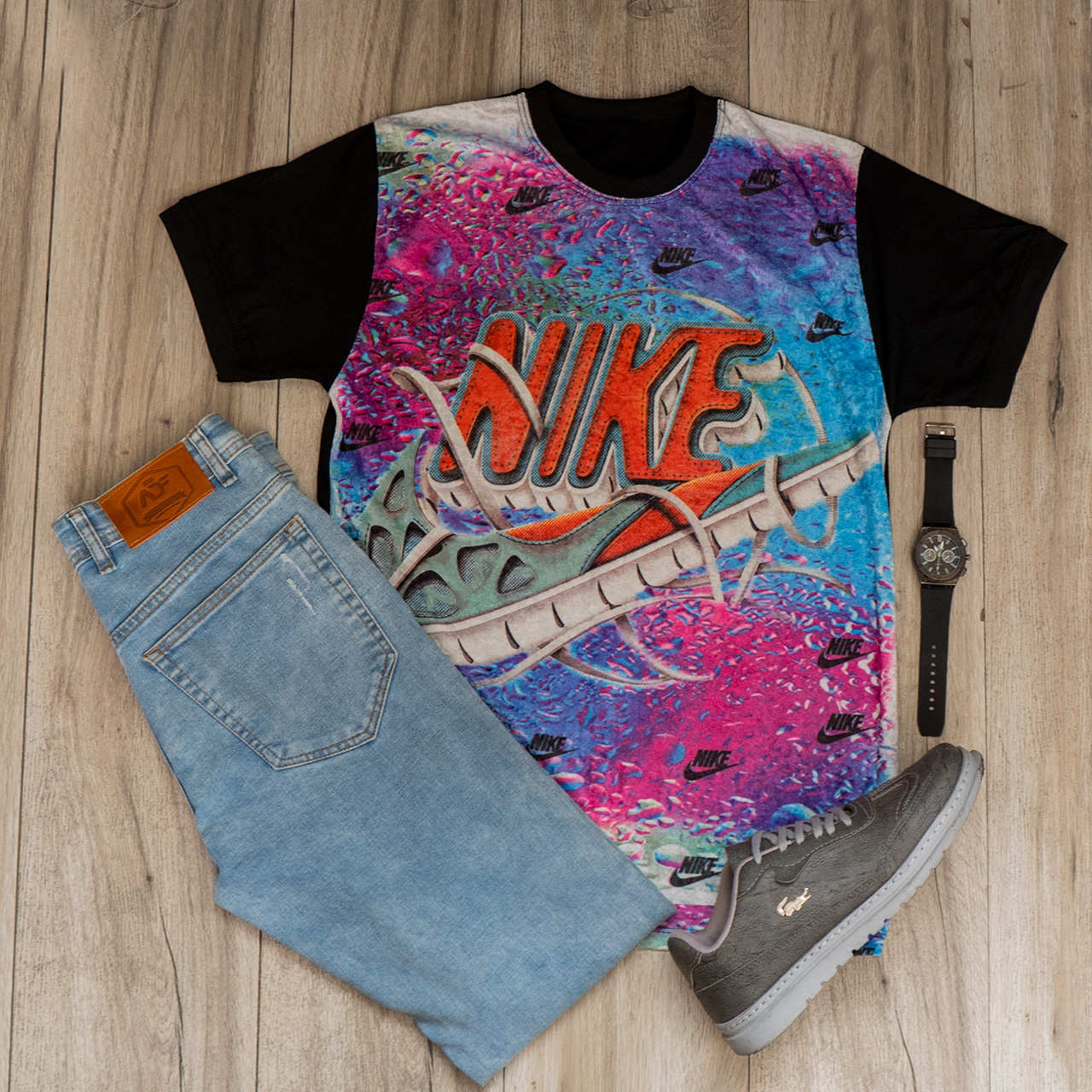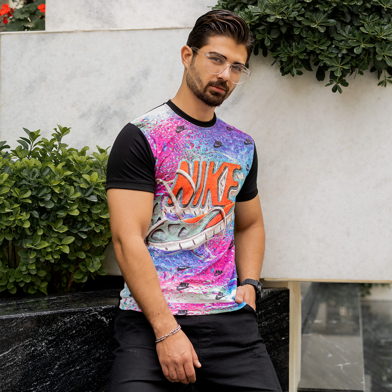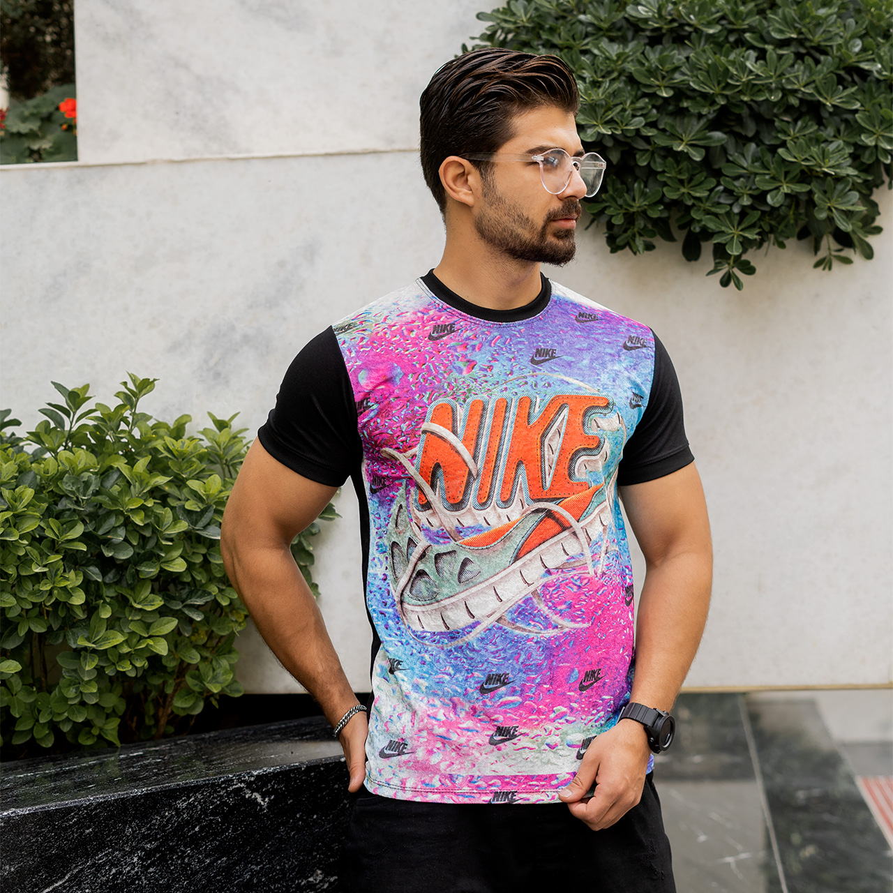 تیشرت مخمل مردانه نایک کفشی صورتی مدلL105