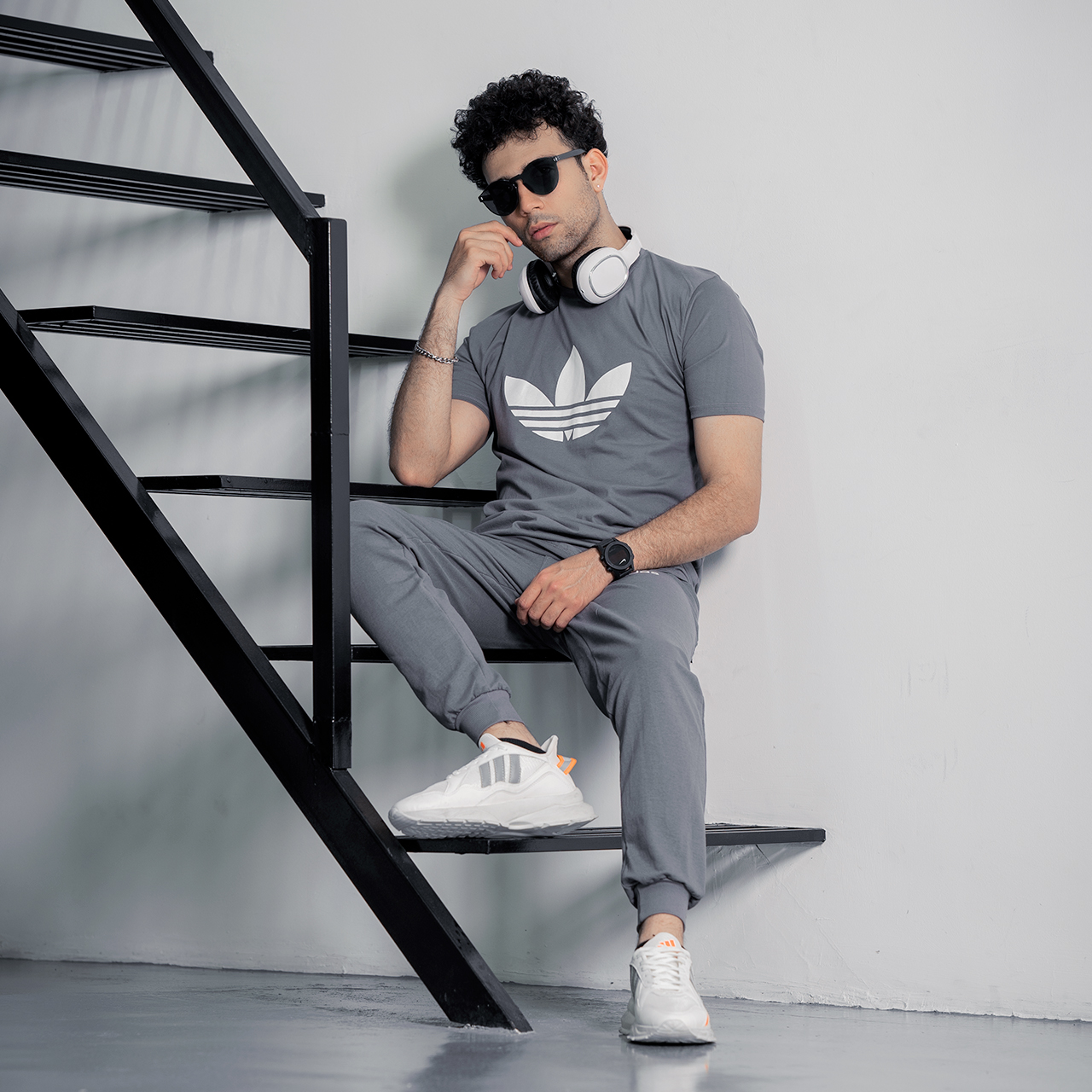 ست تیشرت شلوار مردانه طوسی آدیداس مدل DG110