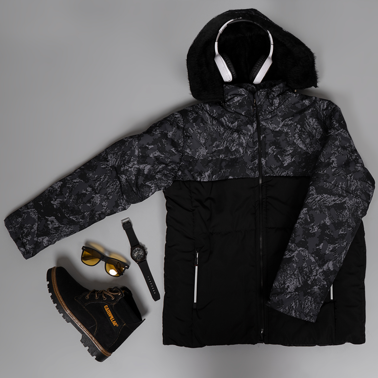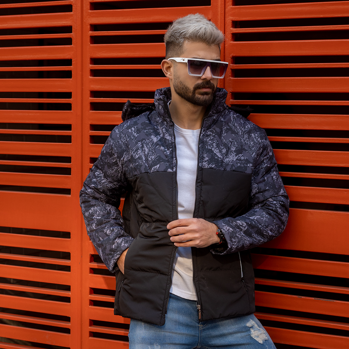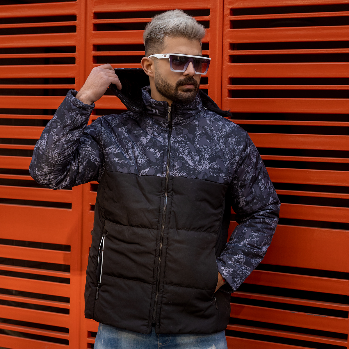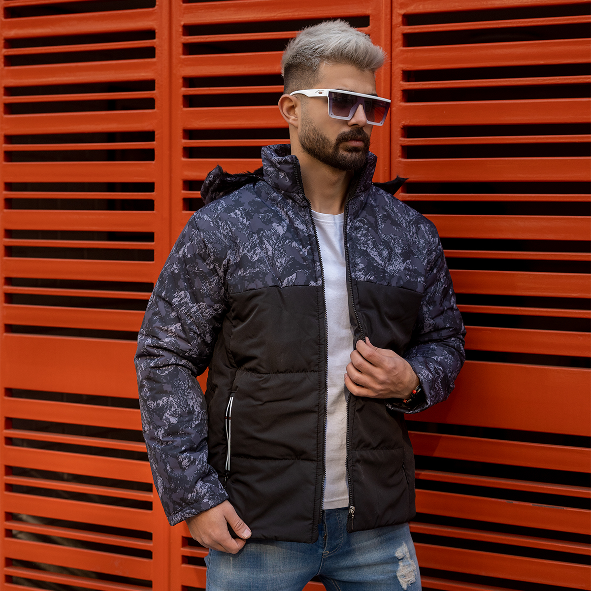 کاپشن دورنگ طوسی-مشکی مردانه مدلRovin