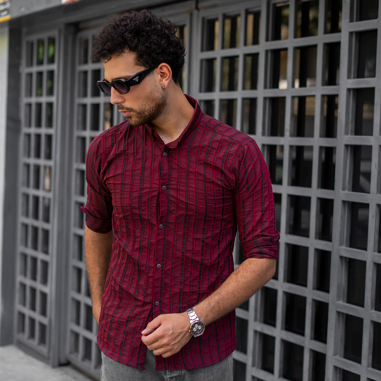 پیراهن راه راه قرمز مردانه مدل Mavin