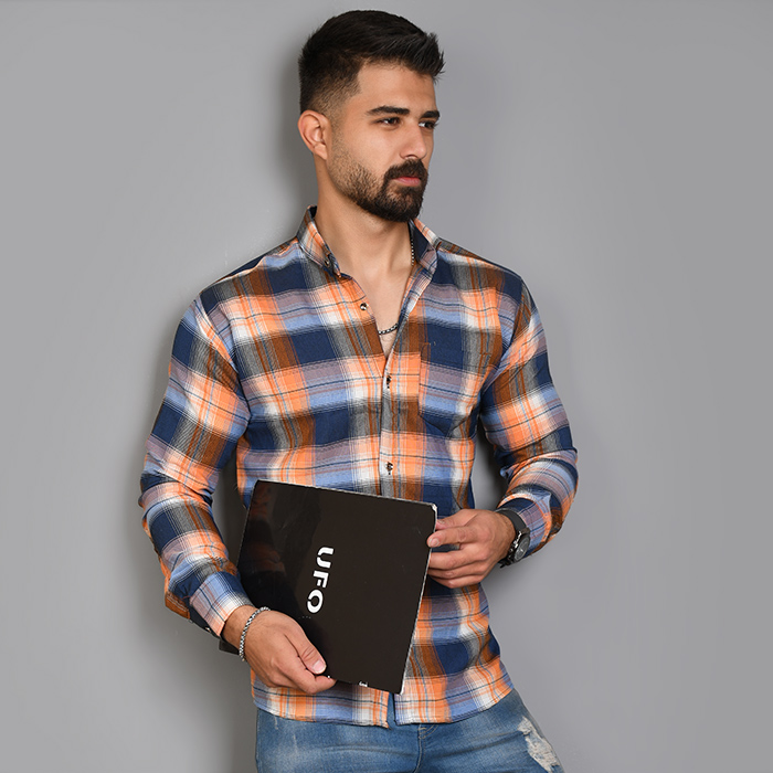 پیراهن مردانه چهارخونه نارنجی سرمه ای مدل Robert
