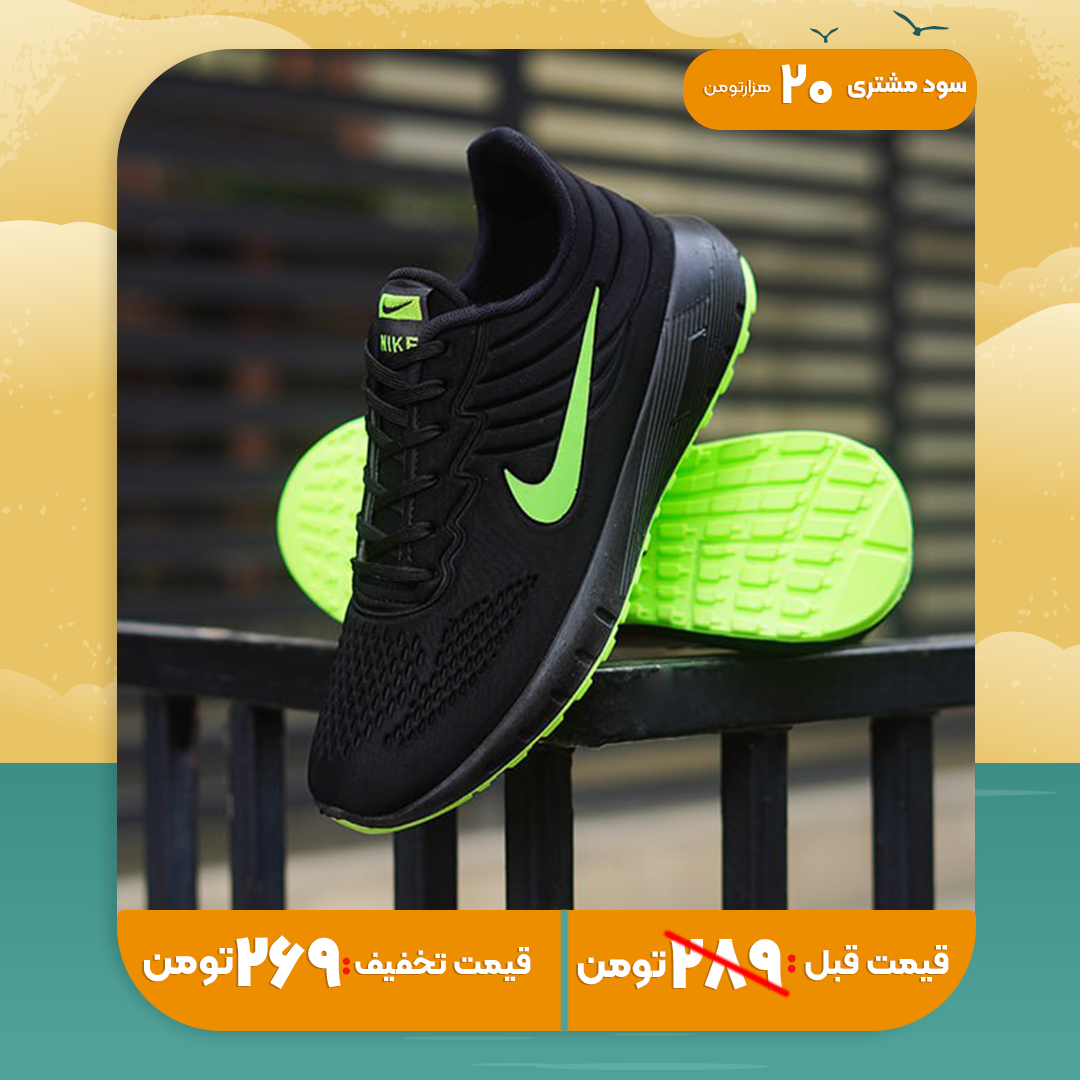 کفش ورزشی مشکی سبز نایک مردانه مدل moj