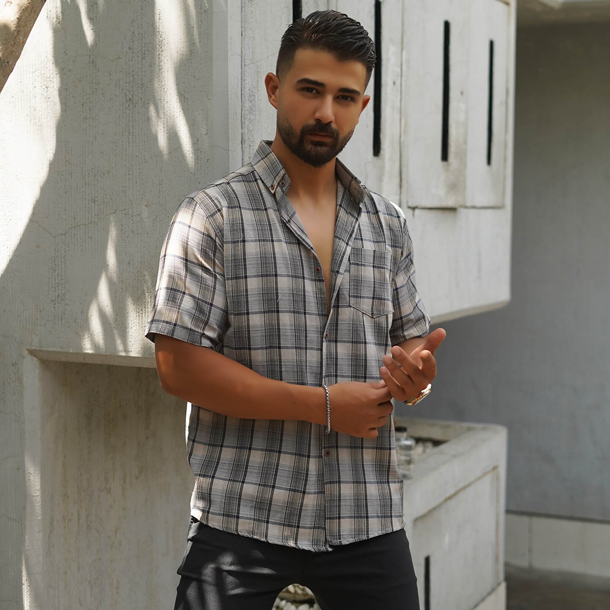پیراهن آستین کوتاه خاکی مدل Samyar