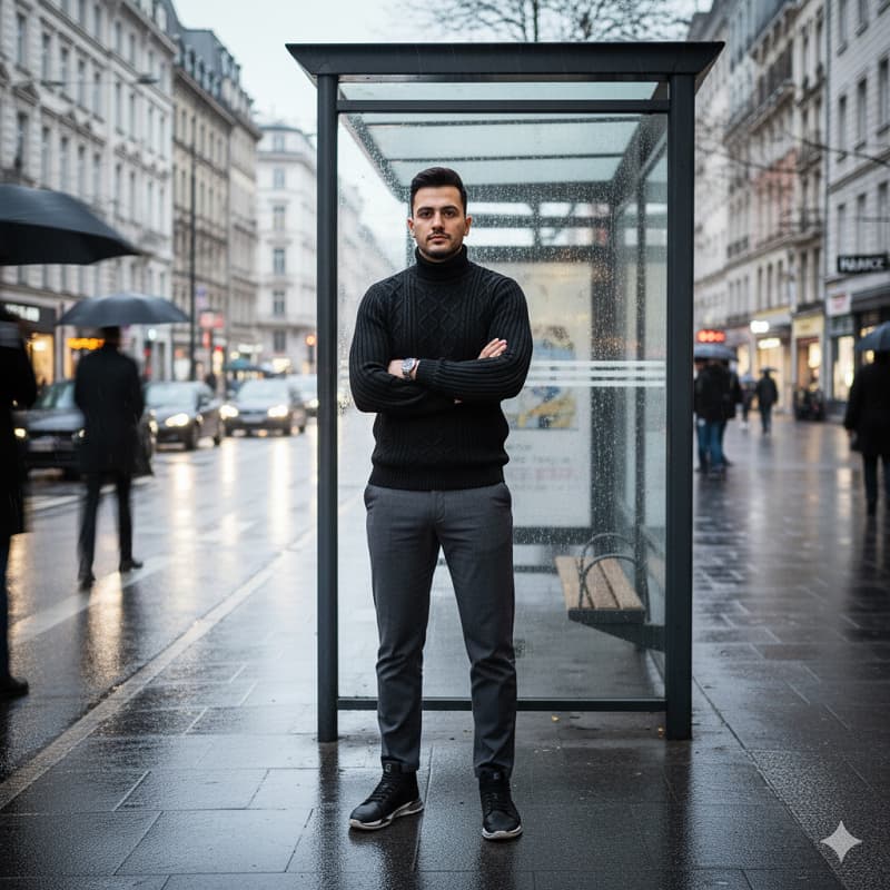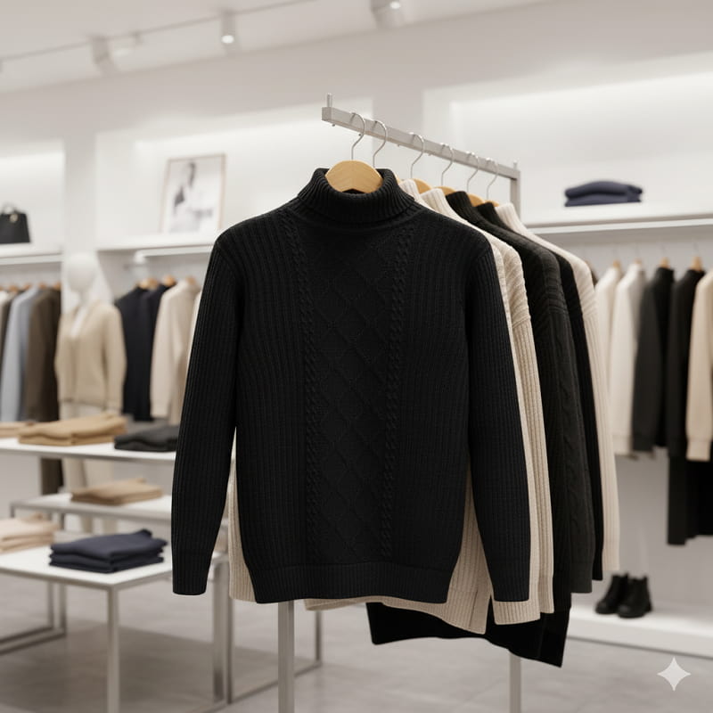 پلیوربافت مردانه مشکی یقه اسکی مدل Hakan
