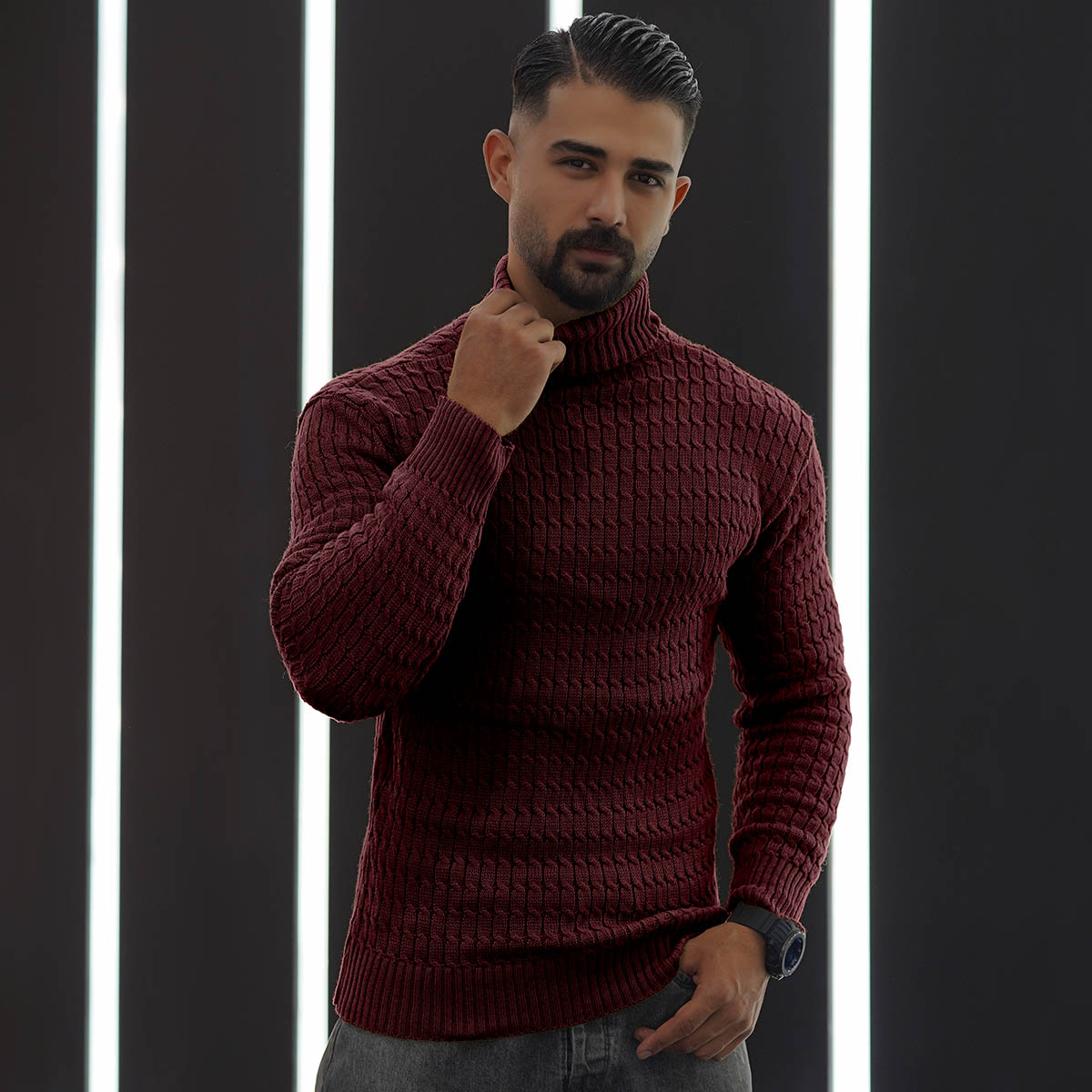 پلیوربافت مردانه زرشکی یقه اسکی مدل Pouyan