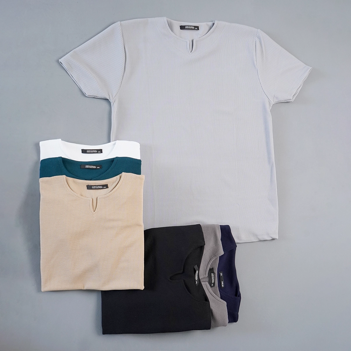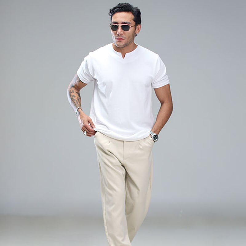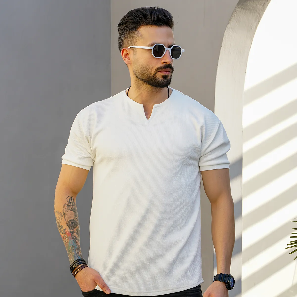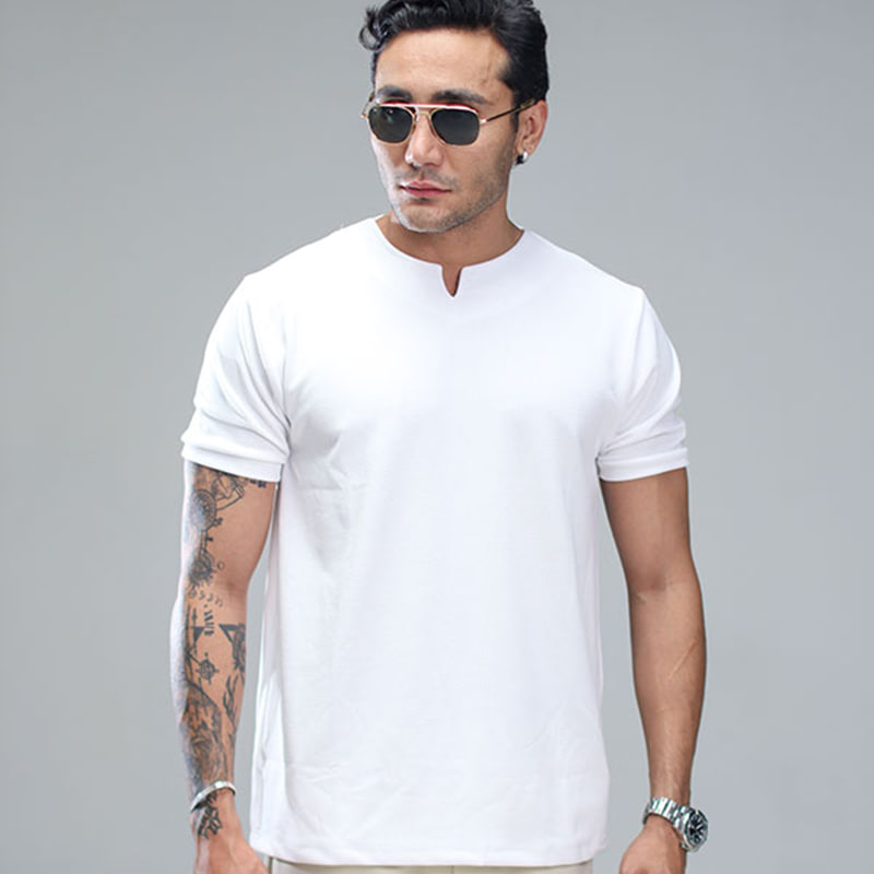 تیشرت آستین کوتاه یقه کوبایی سفید مردانه مدل Asam