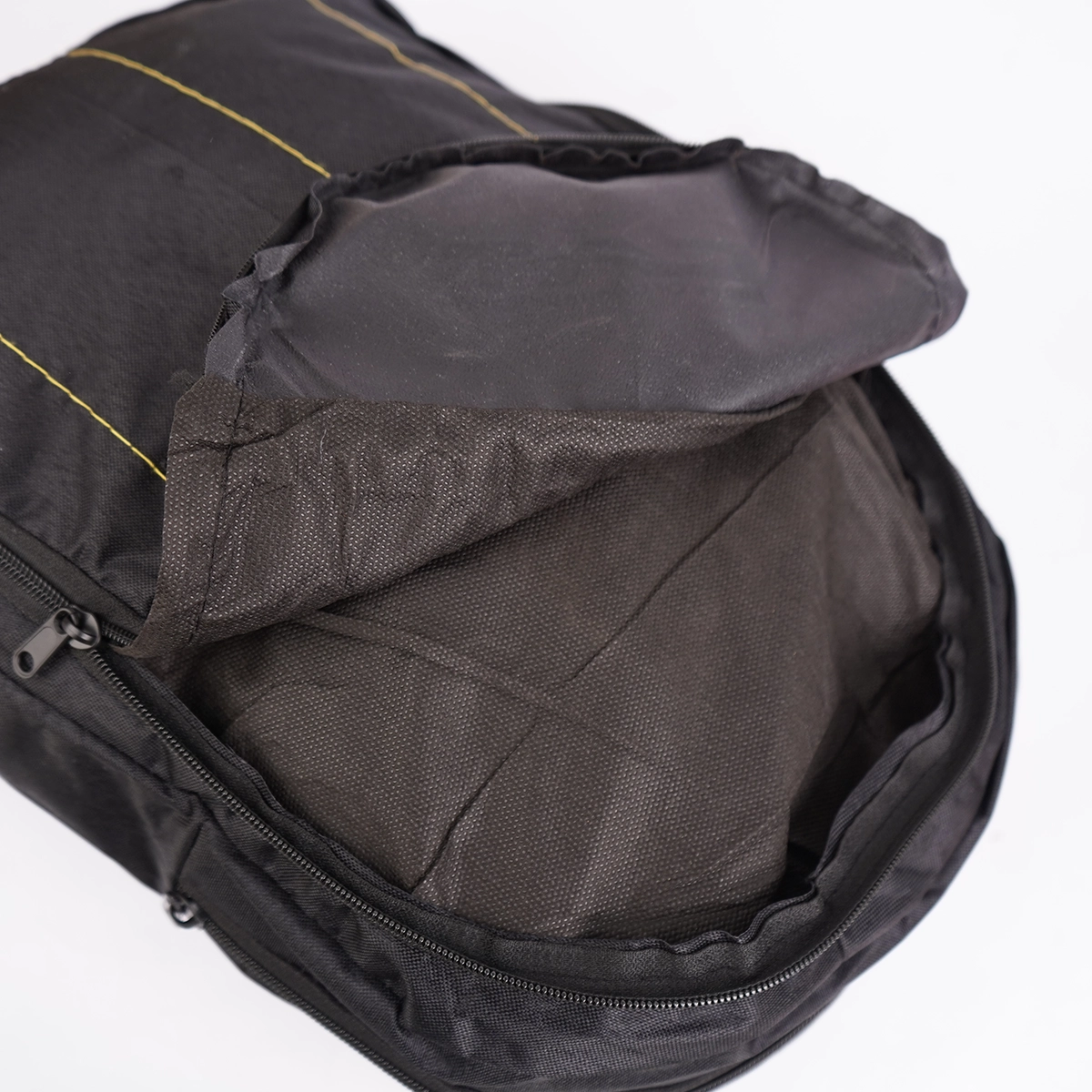 دارای یک محفظه بزرگ و دو جیب کوچکتر روی کیف و دو جیب کناره های کیف