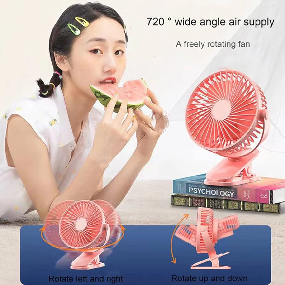 این پنکه می تواند گزینه مناسبی برای زمانی باشد که شما به برق دسترسی ندارید و یا برق رفته است. باطری این پنکه شارژ می شود و می توانید از آن بدون نیاز به اتصال مداوم به برق استفاده کنید. قدرت پرتاب هوا توسط پره های این پنکه با توجه به ساخت متفاوت بسیار بالا است و گردش هوای مناسب و قوی تری ایجاد می کند.این پنکه قدرت انتخاب سه سرعت را به فرد می دهد که با توجه به شرایط فرد انتخاب می کند کدام سرعت را تنظیم کرده و استفاده کند.دارای گیره اتصال برای متصل نمودن به میز یا دستگیره و یا دسته صندلی یا داخل ماشیناین پنکه از سایز خوبی برخوردار است که می توان آن را داخل کیف قرار داده و با خود حمل کنید.یکی دیگر از ویژگی های این پنکه حالت چرخش 360 درجه آن است که با توجه به نیازتان می توانید جهت آن را تنظیم کنید. این پنکه دارای LED در داخل پنکه می باشد که هنگام کار کردن زیبایی خاصی به محصول می بخشد.