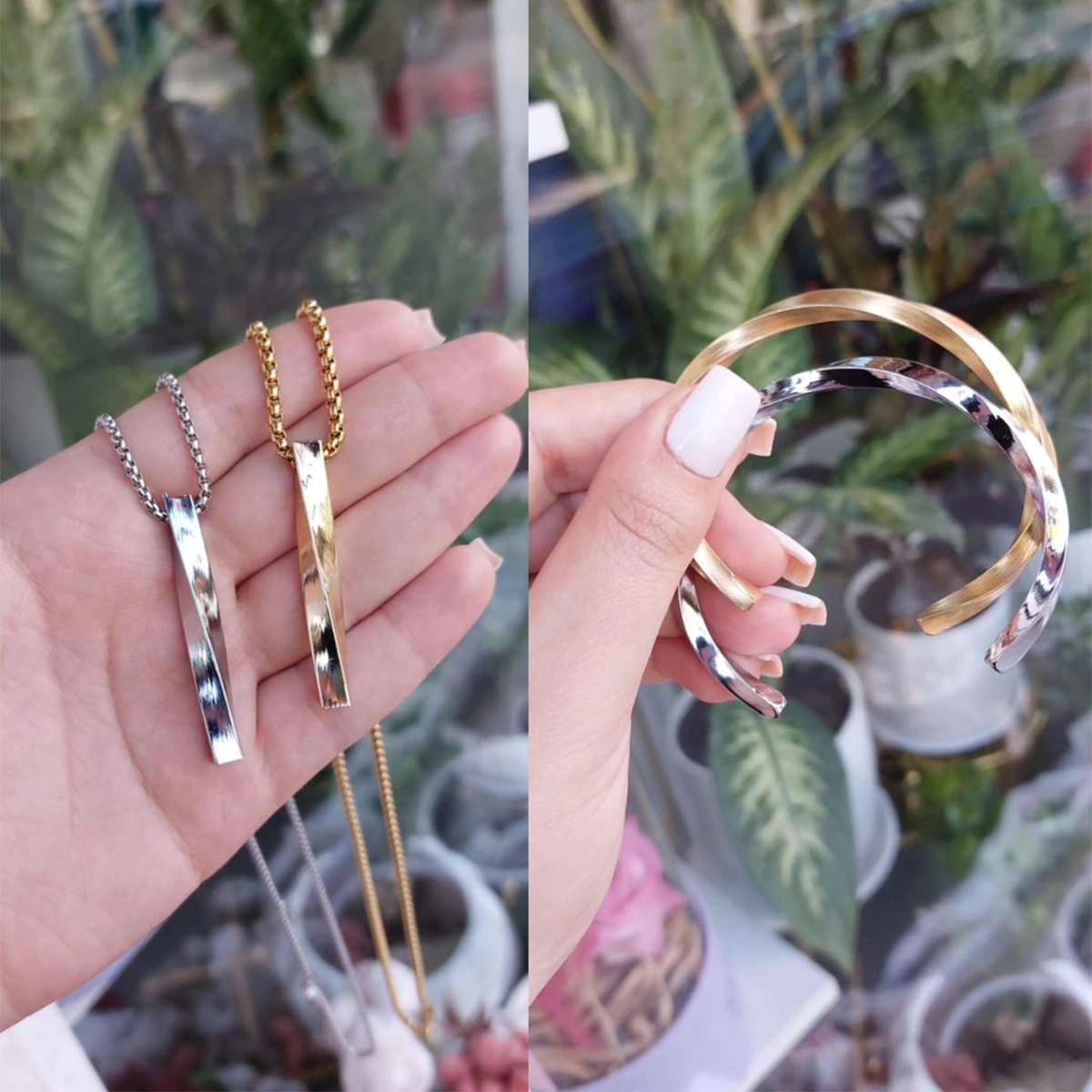 ست گردنبند و بنگل پیچ خورده ( نقره ای )