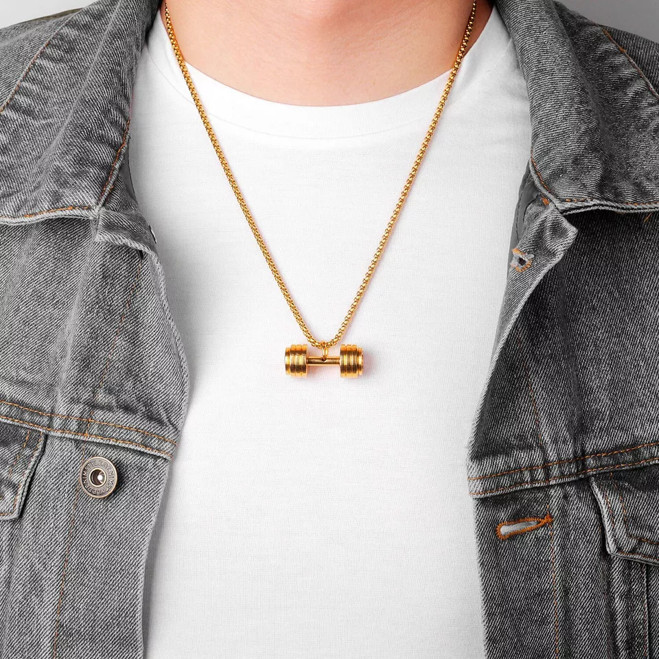 گردنبند مدل دمبل ( طلایی ) نحوه بسته شدن زیورآلات : ساده طول زنجیر: 50 سانتیمتر جنس پلاک : استیل