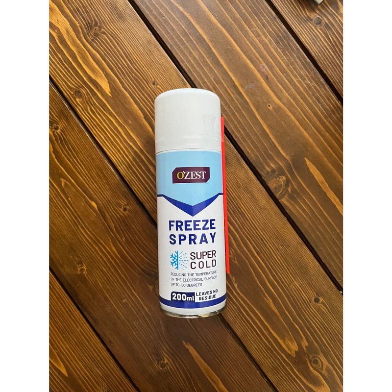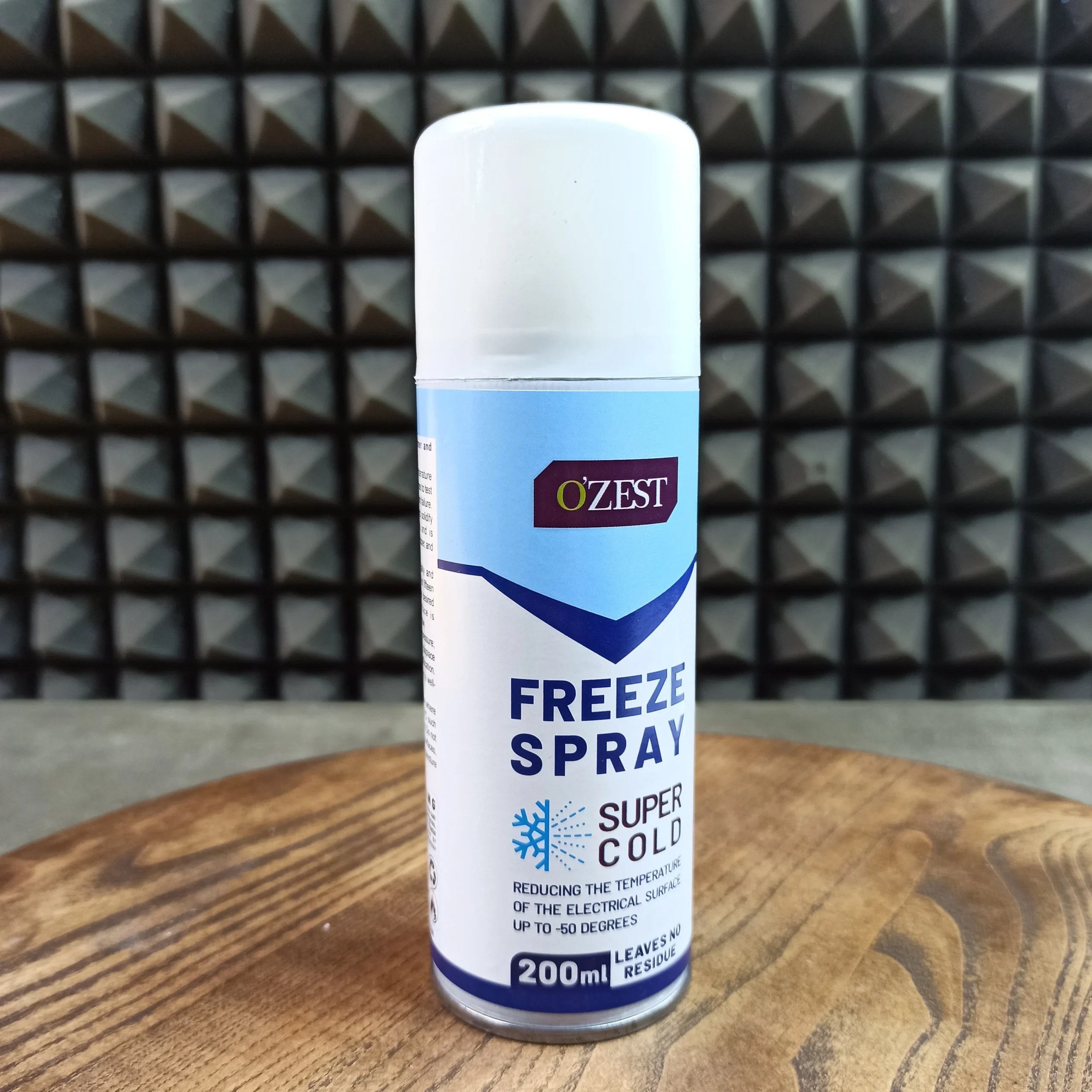 قطعات الکترونیکی معیوب روی برد پس از اعمال جریان , درجه حرارت بالاتری نسبت به سایر قطعات دارند, این اسپری فریز دمای برد گوشی را تا -50 درجه سانتیگراد پایین میاورد و باعث یخ زدگی موقت برد و آی سی های گوشی میشود و شما با استفاده از اتصال برد گوشی به منبع تغذیه،با آب شدن قسمت فریز شده به راحتی میتوانید از محل اتصالی و ایراد بر روی برد آگاه شوید.