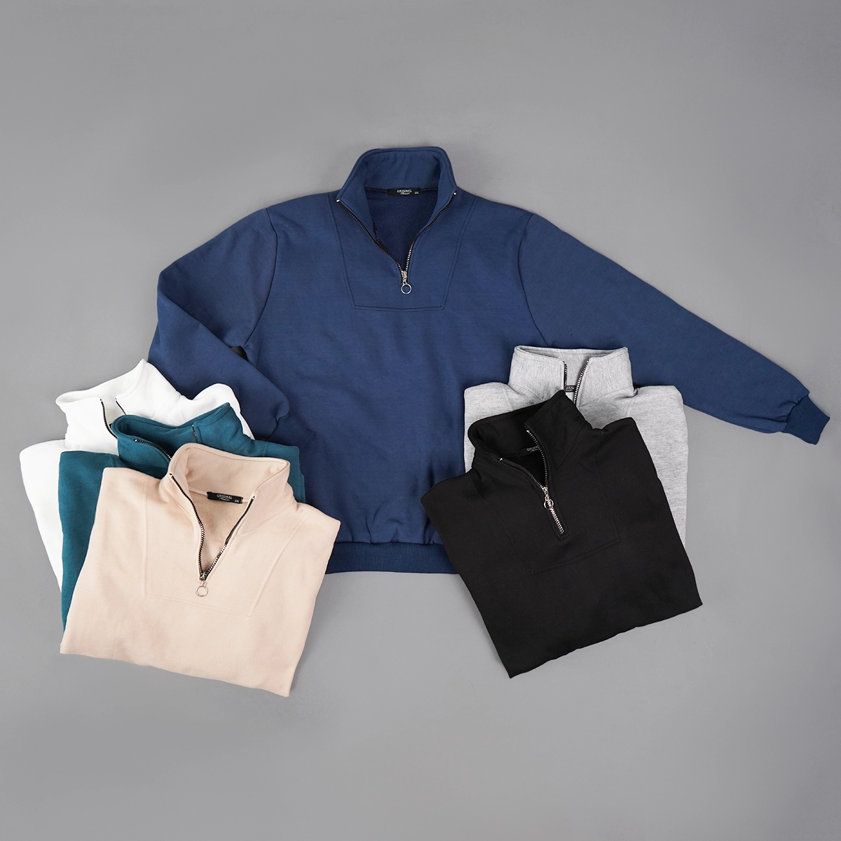 هودی نیم زیپ مردانه آبی مدل Shobin