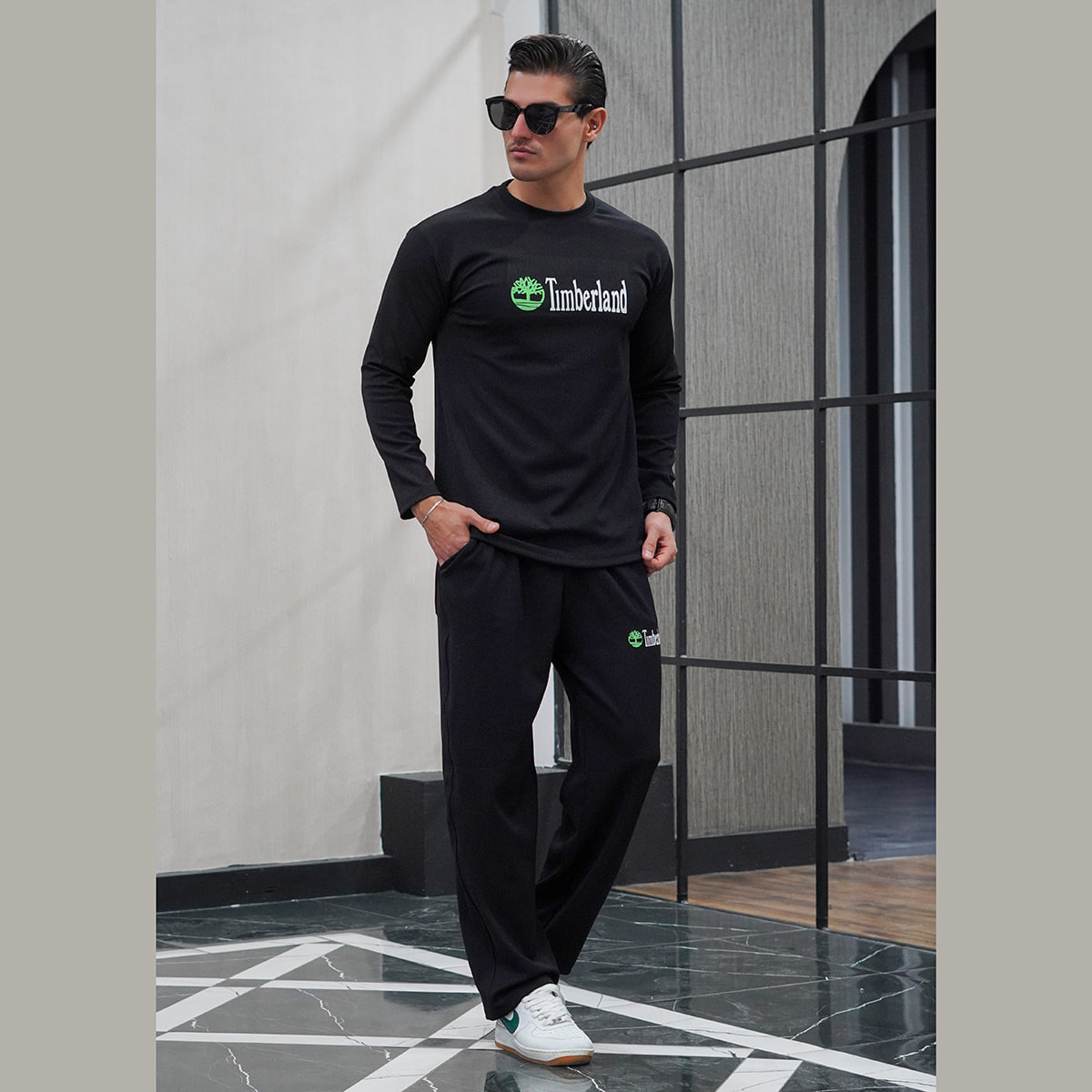 ست بلوز و شلوار مردانه کبریتی مشکی مدل TIMBERLAND
