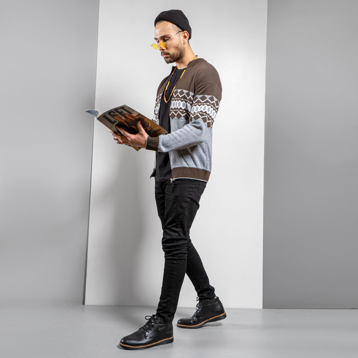 سوئيشرت بافت قهوه اي طوسي مردانه مدل Ezad