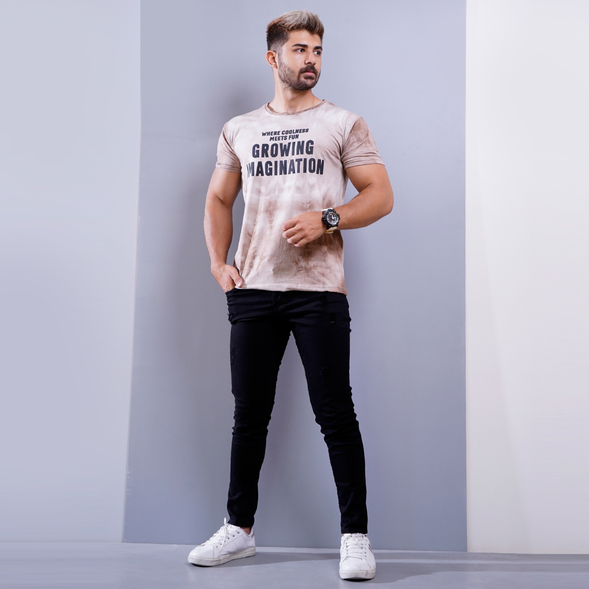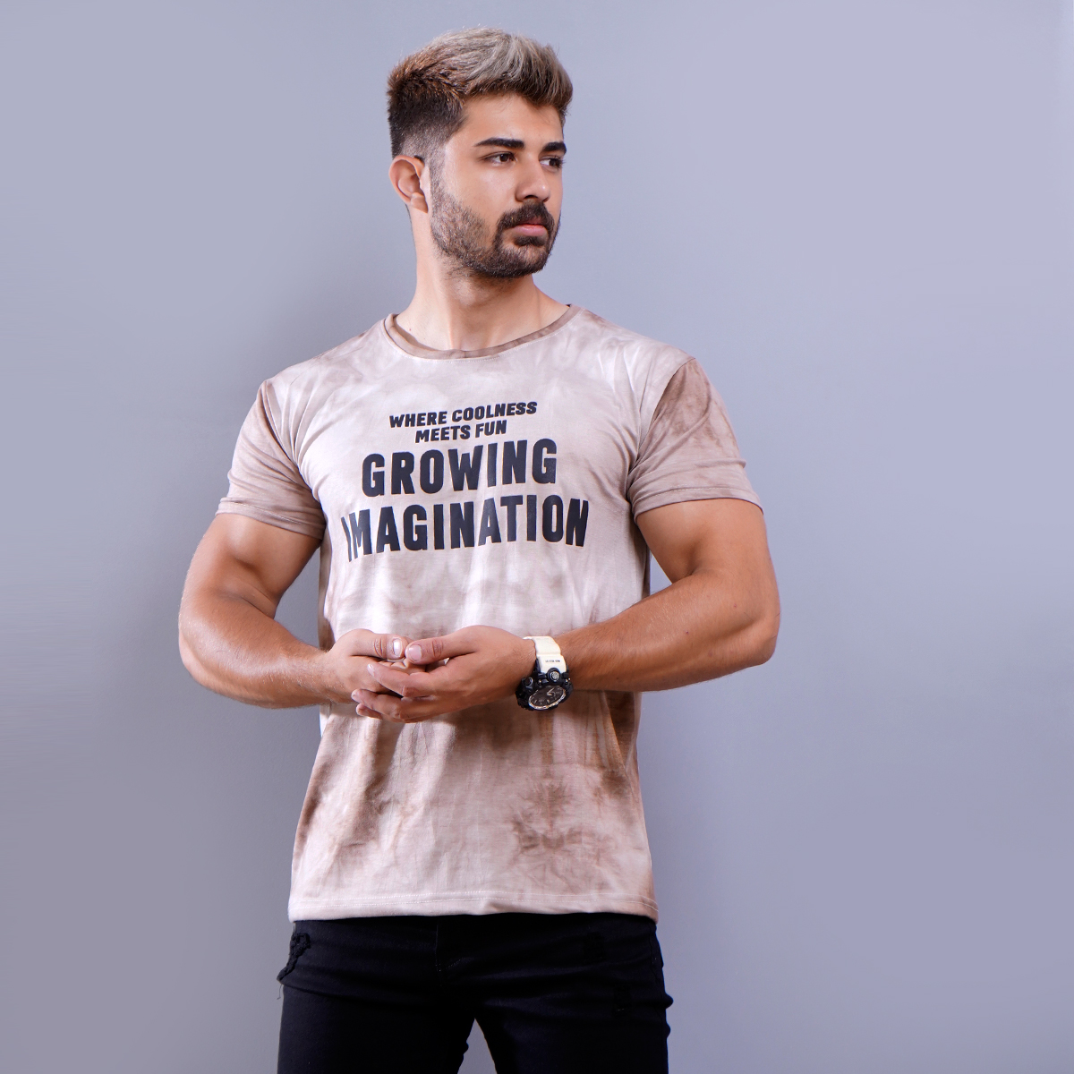 تیشرت مردانه ابر و بادی قهوه ای مدل windy