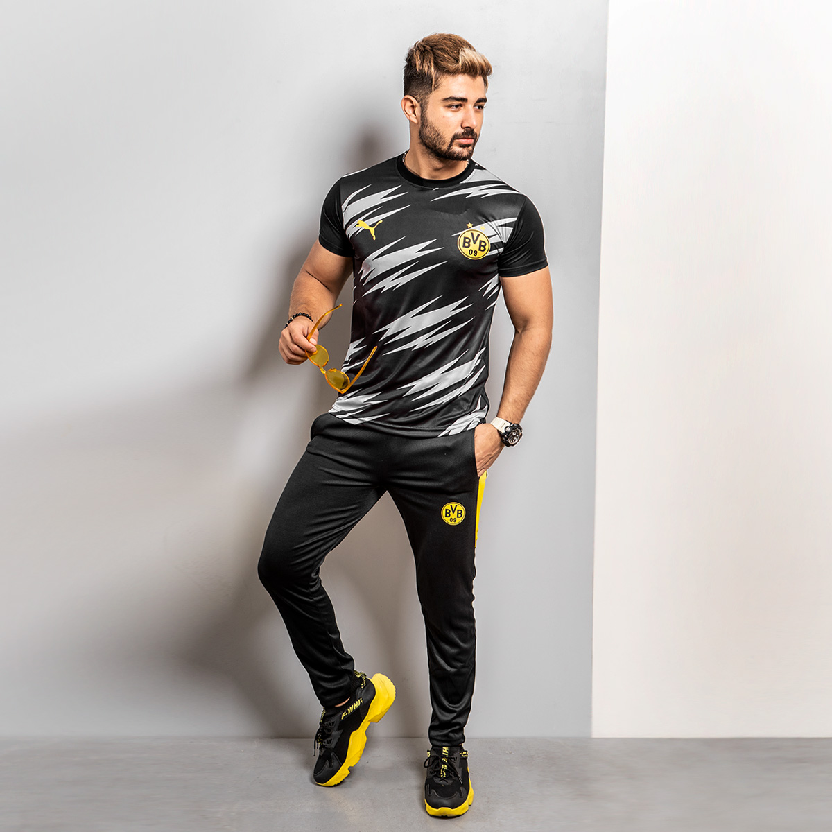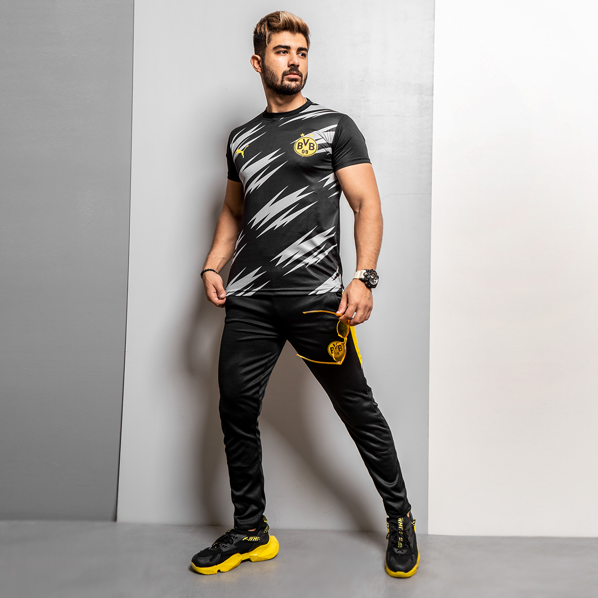 علاقه‌مندان باشگاه‌ها و تیم‌های مختلف ورزشی تمایل دارند پوشاکی با طرح و لوگوی همان باشگاه را بپوشند. از طرفی پوشیدن تیشرت به تنهایی یا شلوار به تنهایی، چندان مورد رضایت نیست؛ به همین دلیل این ست به صورت تیشرت و شلوار ارائه شده و طرح و لوگوی تیم فوتبال محبوب دورتموند را در خود دارد.